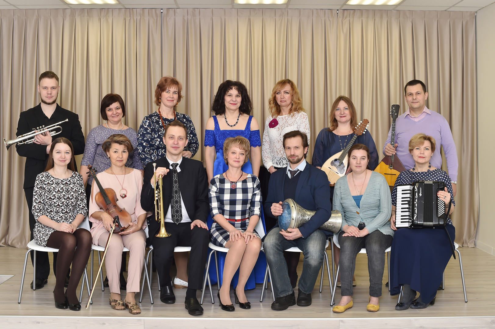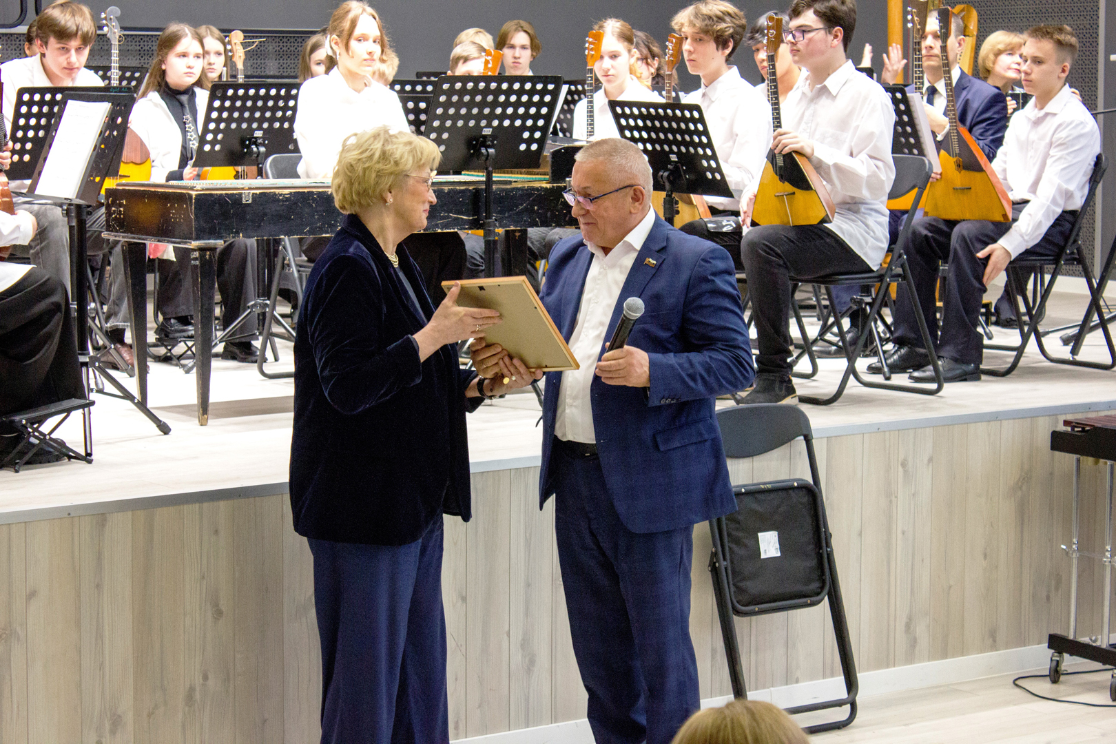 Кульминацией праздничных мероприятий стал юбилейный концерт. Он прошел 12 апреля в нашем зале вместимостью 300 мест, который гостеприимно распахнул свои двери всем желающим. Их было такое количество, что многим пришлось стоять на протяжении всего двухчасового мероприятия. На высоком уровне выступали солисты, ансамбли, коллективы, вышли на сцену и наши выпускники. Звучала классика, произведения современных композиторов, обработки народных песен в исполнении оркестра народных инструментов, ансамблей аккордеонистов, домристов. Оригинальная обработка народной песни прозвучала в исполнении хора «Созвучие» в сопровождении аккордеона (партию аккордеона исполнил наш выпускник Даниил Луговый, лауреат премии Гранта Москвы).