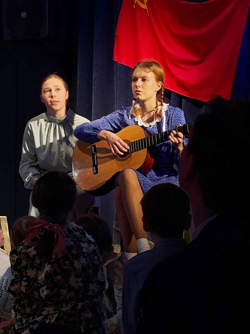 Учащиеся театрального отделения порадовали удивительным по эмоциональному накалу спектаклем «Девочки», по мотивам произведений Бориса Васильева: спектакль был поставлен Кораблевой М.В. и ее воспитанниками - учащимися 7 класса. 14-15 летние подростки настолько погрузились в материал, так точно подобрали образы, что заставили плакать ошеломленный зал.