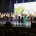 Наши участники всегда награждаются призами – они тоже особенные, их изготавливают известные мастера, камнерезы Урала. Все призы эксклюзивны, камнерезная мастерская делает их специально для нас. Для двух Гран-при – взрослых и детских коллективов – это малахитовые кубки, для победителей в категориях – скрипичный ключ на малахитовой подставке с нашей фирменной Уральской Бажовской змейкой. С особым трепетом в 2025 юбилейном году организаторы подготовили специальные призы в номинации «За лучшее исполнение патриотической песни». Были и картины зарисовки – виды уральской природы в исполнении уральских художников».