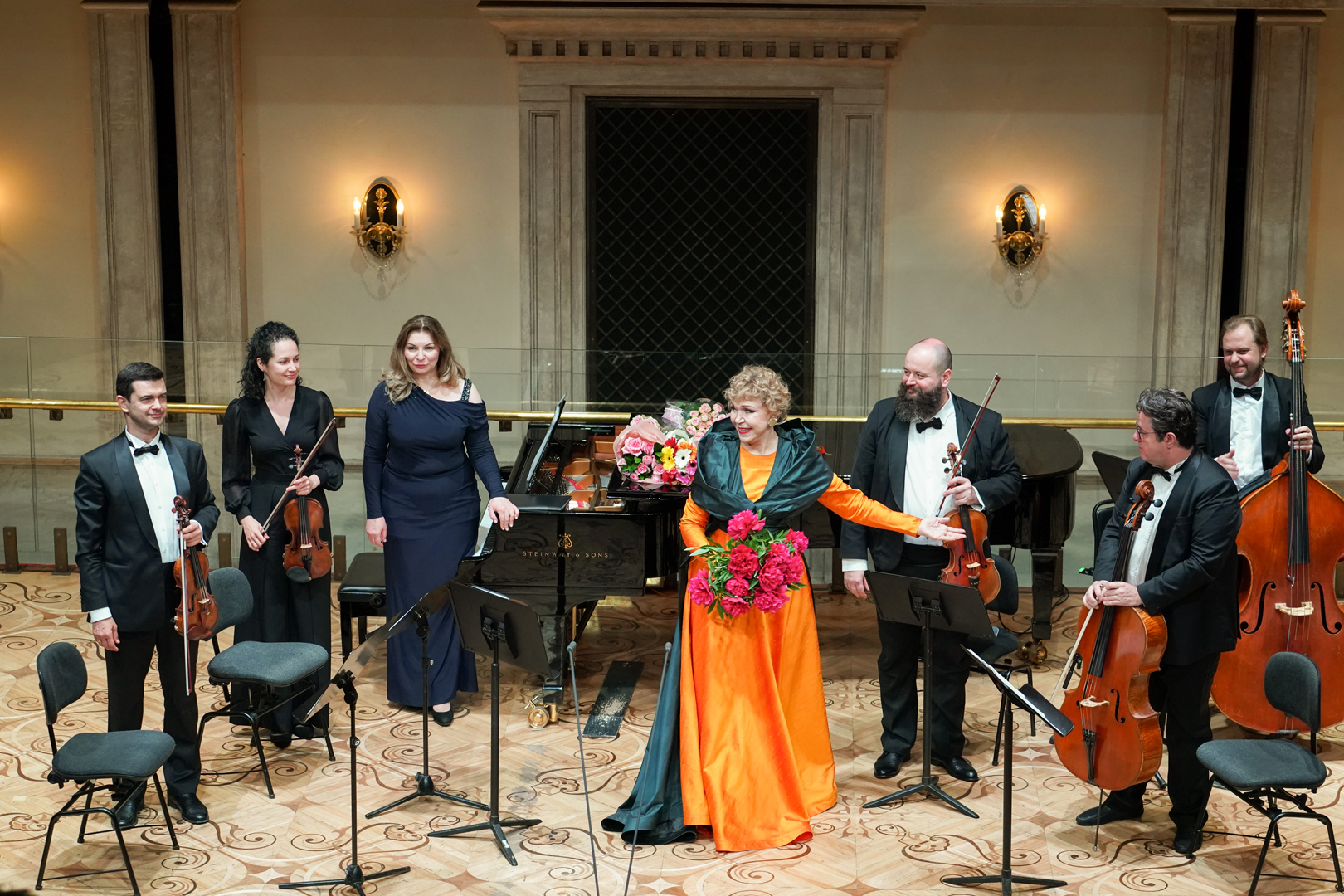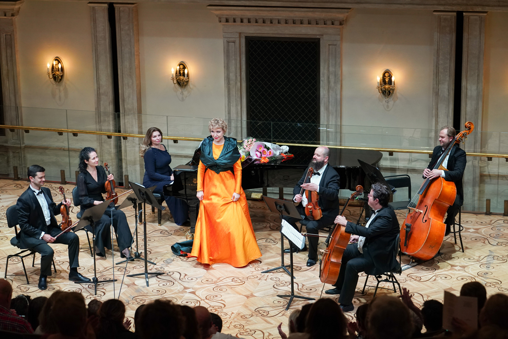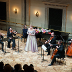 Также участие в вечере принял давний партнер и друг певицы, известный тенор Всеволод Гривнов. Помимо глинкинского дуэта он спел два романса Рахманинова, продемонстрировав яркие стабильные верха. И, конечно, незаменим был в бисе концерта, которым стал дуэт Ганны и Данилы из «Веселой вдовы», исполненный в непривычном для России раскладе голосов: вместо сопрано и баритона – контральто и тенор, которые при всей разности тембров и техник гармонично сливались, сообщая своим персонажам неожиданные тембральные характеристики.