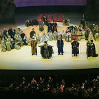 С этими титрами вообще был откровенный перебор. Огромное количество текста, поясняющего то хитросплетения политики Годунова, то внешнеполитический контекст его правления, то расстановку сил внутри Русского царства, постоянно «ползло» по заднику-экрану, здорово отвлекая от происходящего на сцене, рассеивая внимание публики, попросту мешая разворачивающейся драме, которая, хотя и повествует об исторических лицах, сама по себе очень условно исторична. Обилием явно излишней информации режиссер словно желал заполнить лакуны постановки, очевидные недоработки, недодуманность многих мизансцен и в целом театрального решения. Существенной работы с актерами увидеть не удалось. Все певцы, включая Ильдара Абдразакова, лицедействовали в силу своих способностей и наработанного опыта – у кого-то (маститых солистов Большого и Мариинки) роли давно и крепко сделаны, у кого-то (зеленой молодежи, только пробующей силы в великой опере) собственного решения нет, они в основном вокализируют на авансцене и ходульно жестикулируют, ибо режиссер не предложил им ничего увлекательного.