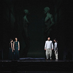 Наряду с множеством камерных программ в филармонии и Органном зале, мастер-классами, лекциями и кинопоказами «сетевые алгоритмы» включали в себя две большие оперные премьеры. Помимо «Самсона и Далилы» на сцене Пермской оперы, публика могла увидеть «Трехгрошовую оперу» в ДК им. Солдатова, но этот проект получился настолько неудачным, что писать о нем грустно. Режиссер Нина Воробьева, вероятно, поставленная в сложные условия подготовки спектакля, выбрала вариант полусценического исполнения, в котором пошла по пути наименьшего сопротивления, разделив каждую роль на двух артистов, – драматического актера и певца, чтобы одни без проблем играли разговорные сцены, а другие без проблем пели. Это не могло присниться Брехту в самом страшном сне, ведь он вместе с Вайлем писал свои зонги на особый тип интонирования и пения. «Самсон и Далила» стала режиссерским дебютом Анны Гусевой. Библейскую историю она увидела в пространстве мифа, простершего свои смысловые границы от Ветхого завета до разгула искусственного интеллекта. На стыке архаики и футурологии строился и визуальный ряд, в создании которого приняла участие громадная группа молодых творцов с ассистентами и ассистентами ассистентов. Гусева выступила лишь режиссером, отдав право рисовать картинку художнику-постановщику и видеохудожнику Юлии Орловой, моделировать костюмы – Анне Чистовой, хореографией заниматься – Анастасии Пешковой. Внешний облик спектакля обрел черты сновидения, в котором угадывались символистские мотивы, включая эстетику «Острова мертвых» Беклина, а в момент роковой встречи Самсона и Далилы на видео вдруг появились существа-аватары, напомнившие мрачный, не сулящий ничего хорошего мир героев фильма Ридли Скотта «Прометей». Танцевальность, пронизавшая всю постановку, не могла не вызвать ассоциаций со стилистикой Саши Вальц, работавшей, в частности, над «Тангейзером» Вагнера в Берлинской государственной опере (вместе с Даниэлем Баренбоймом). Сильно и страшно была решена «Вакханалия» финала: не осталось сомнений, что итог оргии в честь победы над Самсоном – не разрушение храма, а ритуальный суицид, ставший кульминацией дикого, исступленного пляса. Впечатляющая визуальная сторона новой версии «Самсона», к сожалению, не смогла скрыть слабости стороны вокальной, где не хватало ни роскошного меццо-сопрано Далилы, ни героического голоса Самсона, хотя оркестр под управлением Владимира Ткаченко демонстрировал ориентальные пышности партитуры Сен-Санса с повышенным пафосом.