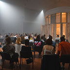 Спустя несколько дней на фестивале, в том же ангаре, представили грандиозный проект «Вечернее собрание Марины Цветаевой»: петербургская актриса Янина Лакоба в роли поэта читала фрагменты из дневников, записных книжек, писем в режиме интерактива, заглядывая в глаза публике, задавая ей неудобные вопросы и ставя в безответный тупик. Лучше этой актрисы, кажется, и невозможно сегодня никого найти на роль Марины. Янина с ее бескомпромиссностью и отчаянностью жестов превзошла даже яркую Викторию Исакову, сыгравшую Цветаеву в фильме «Зеркала». Лакоба начала свою игру, когда зрители только рассаживались, – бродя среди них как неприкаянная; она же и погнала их криком «Уходите, ну, уходите же все», когда завершилась первая часть уже не просто вечернего, а самого настоящего ночного собрания (стрелки на часах показывали глубоко за полночь). Ее выходы перемежались музыкальными резонансами – хоровыми сочинениями на стихи Цветаевой Кирилла Архипова, Виктории Харкевич, Алексея Сюмака, Вангелино Курентзиса, Андреаса Мустукиса. При всей разнице индивидуальностей и стилей, цветаевская поэзия, кажется, произвела на композиторов какой-то общий, равный по силе эффект, в результате которого в музыке появились хрупкость, трепетность, ощущение зыби, марева, миража, жизни души «на ощупь». Стих Цветаевой подарил авторам мощные импульсы в поиске изощренной, а иногда и, напротив, мнимо безыскусной звукописи, напоминающей композиторские поиски Кайи Саариахо. Вторая часть «Вечернего собрания» для многих стала большой неожиданностью. Публика перешла на другую половину ангара, где попала в намного более жесткие, местами беспощадные «условия содержания» перформанса на тему тяжелой женской судьбы уже в XXI веке, оказавшись лицом к лицу не то с поломойками (кем была вынуждена работать Цветаева, как известно), не то с работницами швейного цеха исправительно-трудовой колонии и слушая их звуко- и словотворчество (текст произносился буквально сквозь зубы).