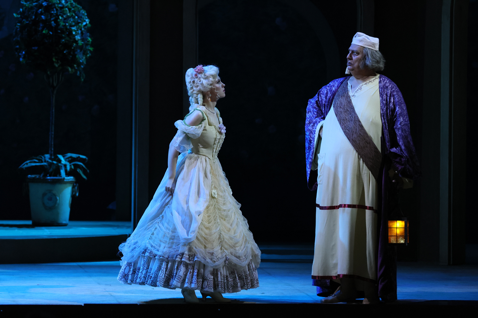 Амброджио Маэстри возвышался над всеми ними большой горой, разыгрывая главную карту сюжета, — роль постаревшего холостяка, решившего жениться. За ним вставала в полный рост философия старости, заявляющей безжалостной молодости в лице тройки антагонистов о своих правах на счастье. Ему не надо было смешить как-то специально — все получалось само собой. Опера комическая, но в лице Паскуале в ней в слышатся слезы, не скрываемые в музыке, где появляется красноречиво меланхоличный минор. Доницетти отнюдь неспроста задавался главным вопросом жизни — неизбежным испытанием старостью, подстерегающей каждого, ведь ему в момент премьеры и самому было уже за 45. Дирижер Андрей Иванов изумлял умением не только держать бодрый, сбалансированный темпоритм оперы, соблюдать тонкости стиля, чистоту артикуляции, делая оркестр самым активным и заметным героем, но и поддерживать правильную температуру стиля.