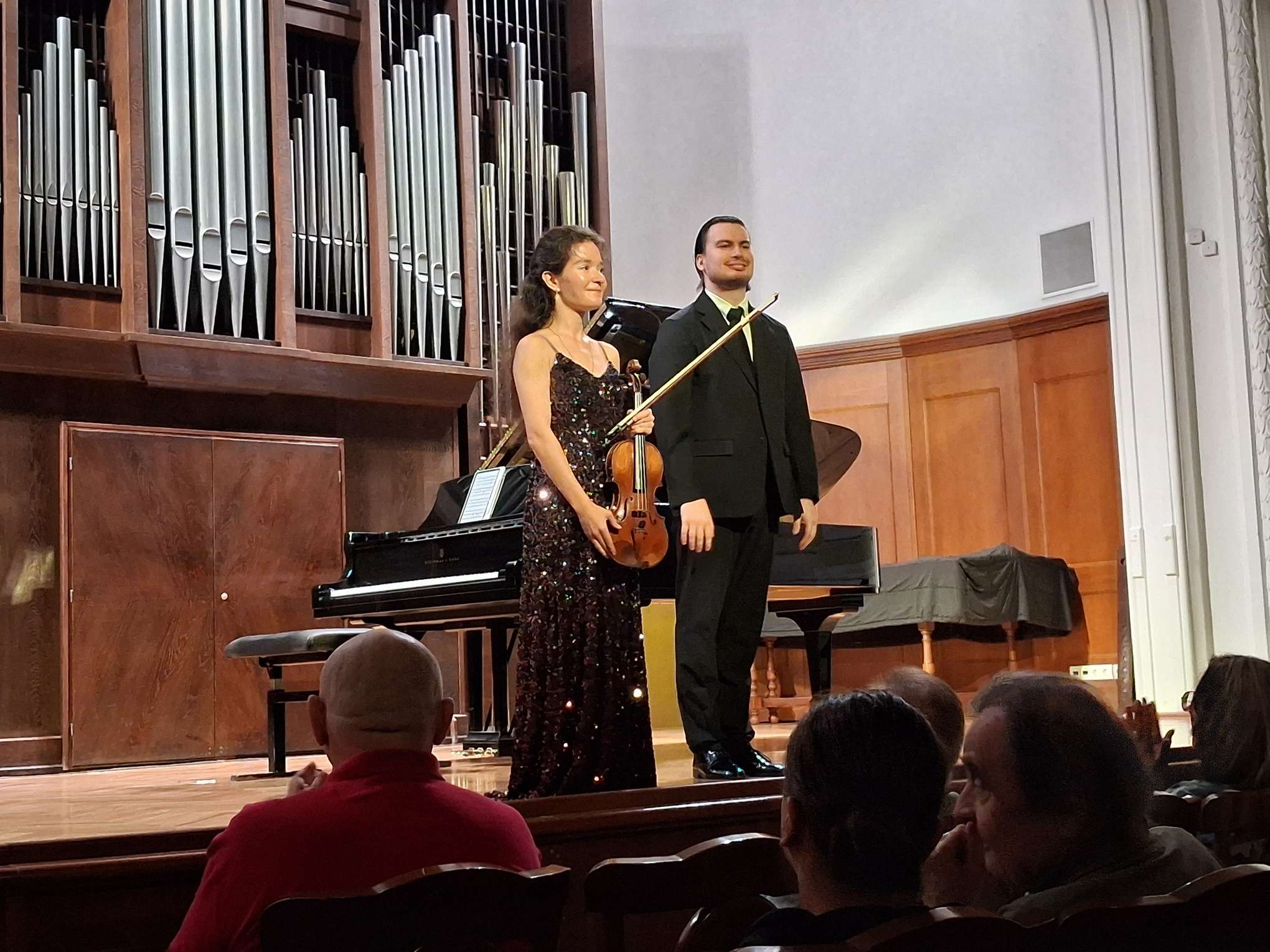 Вообще-то сонаты Бетховена и Шостаковича рассчитаны на дуэт равноправных солистов. Михайлов, однако, выступал со своей мамой, концертмейстером и педагогом Татьяной Михайловой. Впрочем, это обстоятельство если и смущало, то лишь заочно. Потому что Михайлова, не являясь концертирующей пианисткой, показала весьма достойный уровень, не просто поддерживая сына, но и демонстрируя настоящее мастерство. Возникало даже порой впечатление, что именно она ведущая в этом дуэте…