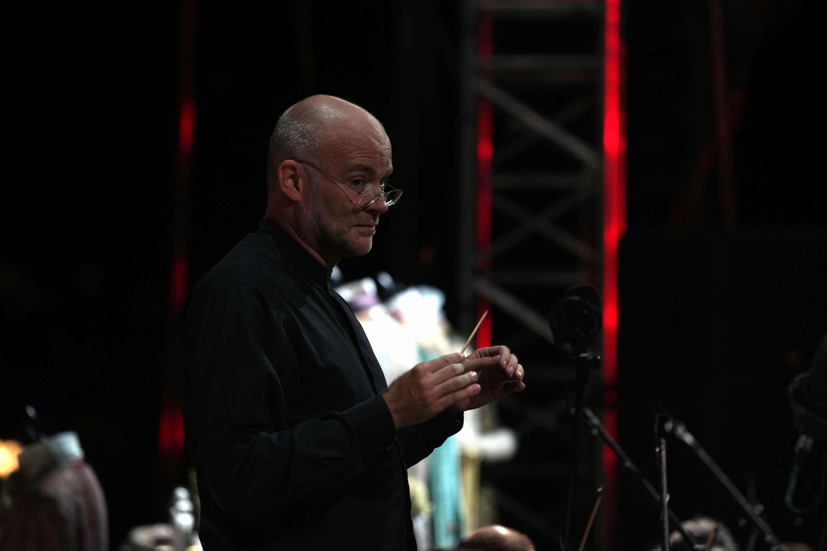 За пультом РНО стоял Дмитрий Корчак. Не все номера программы удались ему в равной мере: где-то немного не хватило техники, где-то – опыта управления внушительными массами, да еще в столь нестандартных условиях, а вероятно, еще и репетиционного времени, но все это во многом компенсировалось музыкантским вдохновением, наслаждением самим процессом дирижирования.