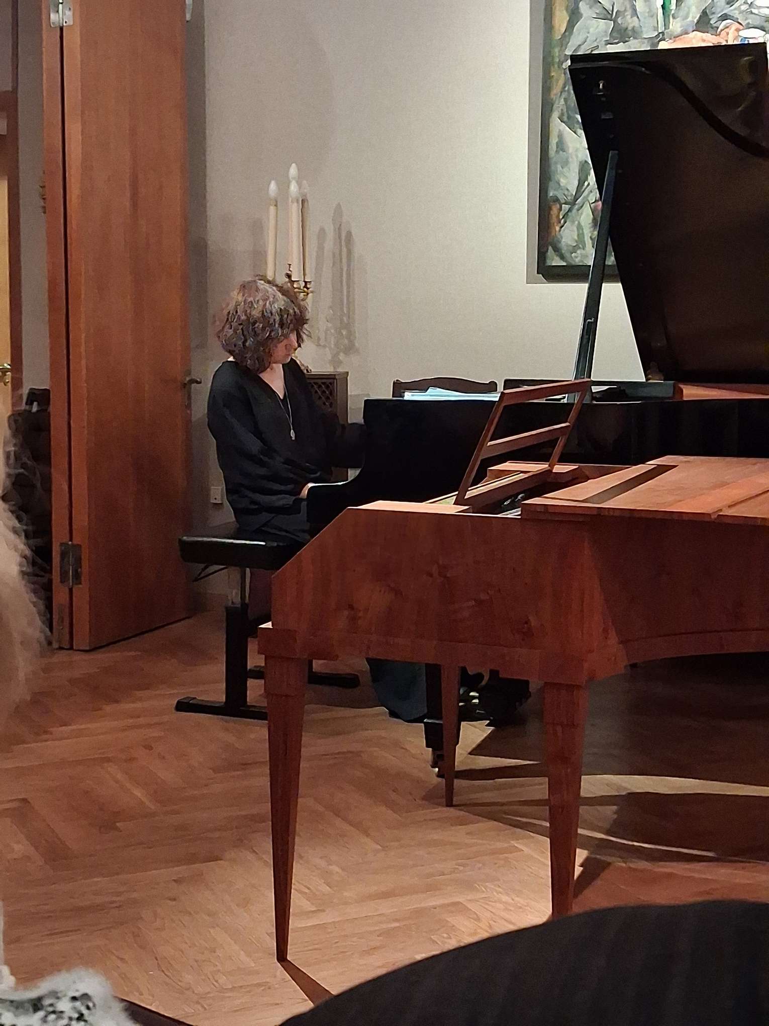 Программа первого отделения исполнялась на хаммерклавире, и в столь камерном помещении он звучал наилучшим образом. Во втором, если можно так сказать, постмоцартовском отделении участвовал уже рихтеровский рояль. И, должен признаться, при всем почтении к прекрасному историческому инструменту, более богатое красками и оттенками звучание «Стейнвея» сильнее воздействует на душевные струны.