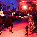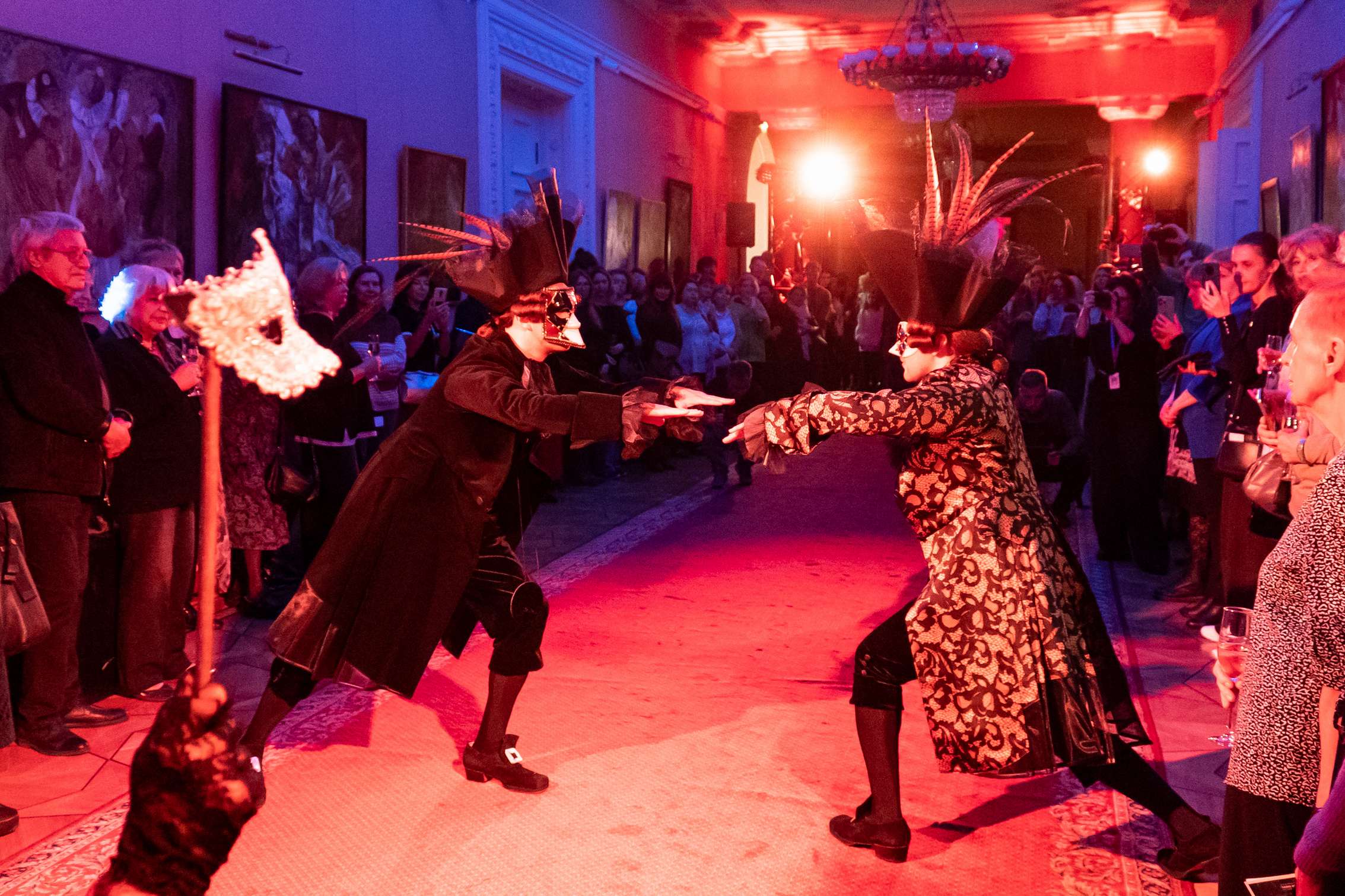 Предъявили его еще до начала спектакля, пригласив публику прийти на полчаса пораньше. Сюрприз назывался «Ночной венецианский карнавал». В полумраке одного из театральных фойе плыли в танце дамы и кавалеры в масках, попутно разыгрывая нехитрый сюжет. Какой-то Андре в камзоле влюбился в какую-то Паолу в фижмах и схватился из-за нее со своим другом Пьетро. В поединке оба пали. Все как в прокофьевской опере, только понарошку. А после того как «убитые» резво вскочат, хористы, изображавшие кавалеров и дам, раскланяются, солисты-вокалисты Вагиф Турабов, Кристина Мунтяну и Николай Пацюк сорвут заслуженные аплодисменты, зрители в самом приятном расположении духа — угостившись дареным шампанским и (кому повезло) под ручку с галантным сопровождающим двинутся в Белоколонный зал театра на основное представление.