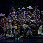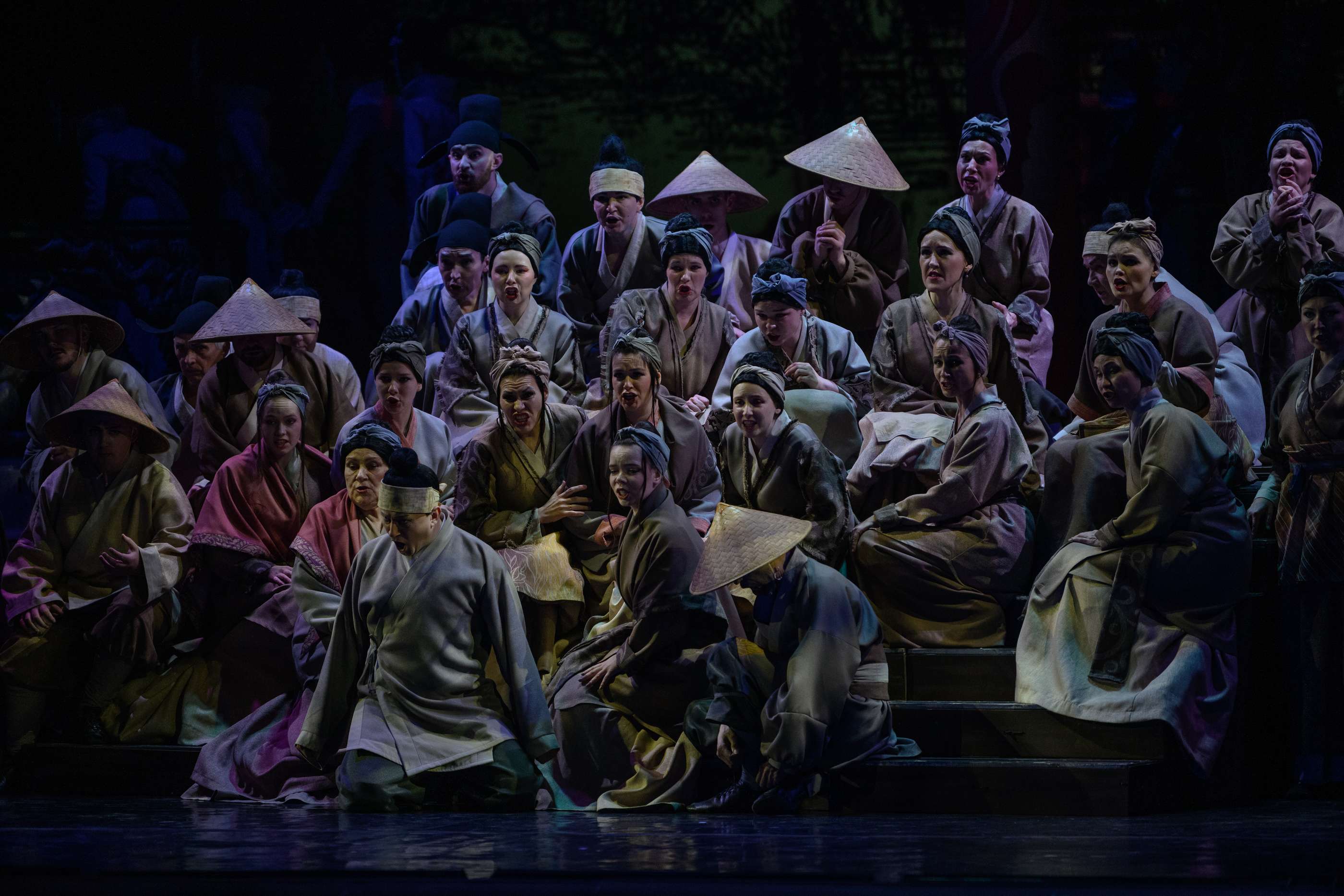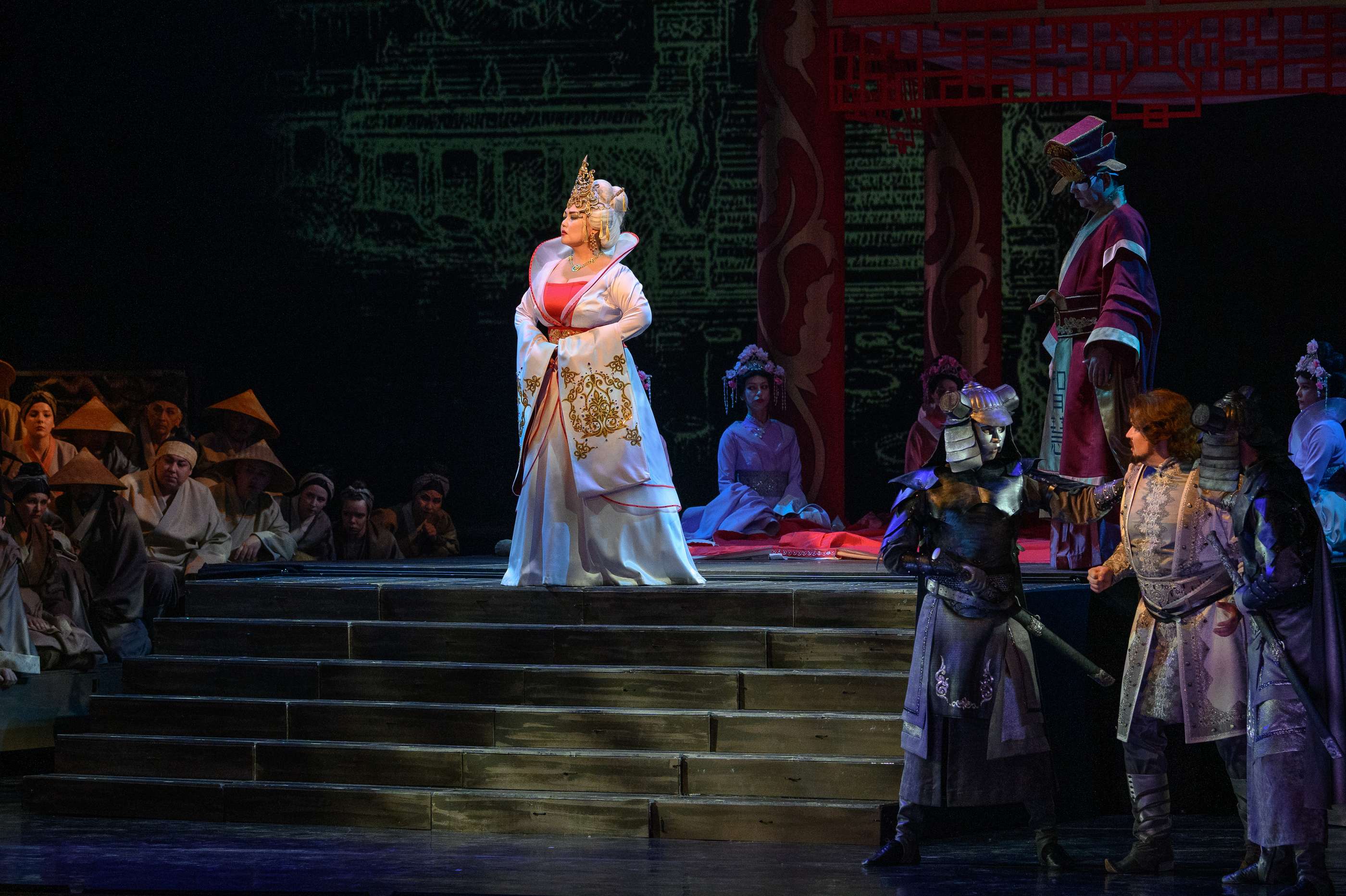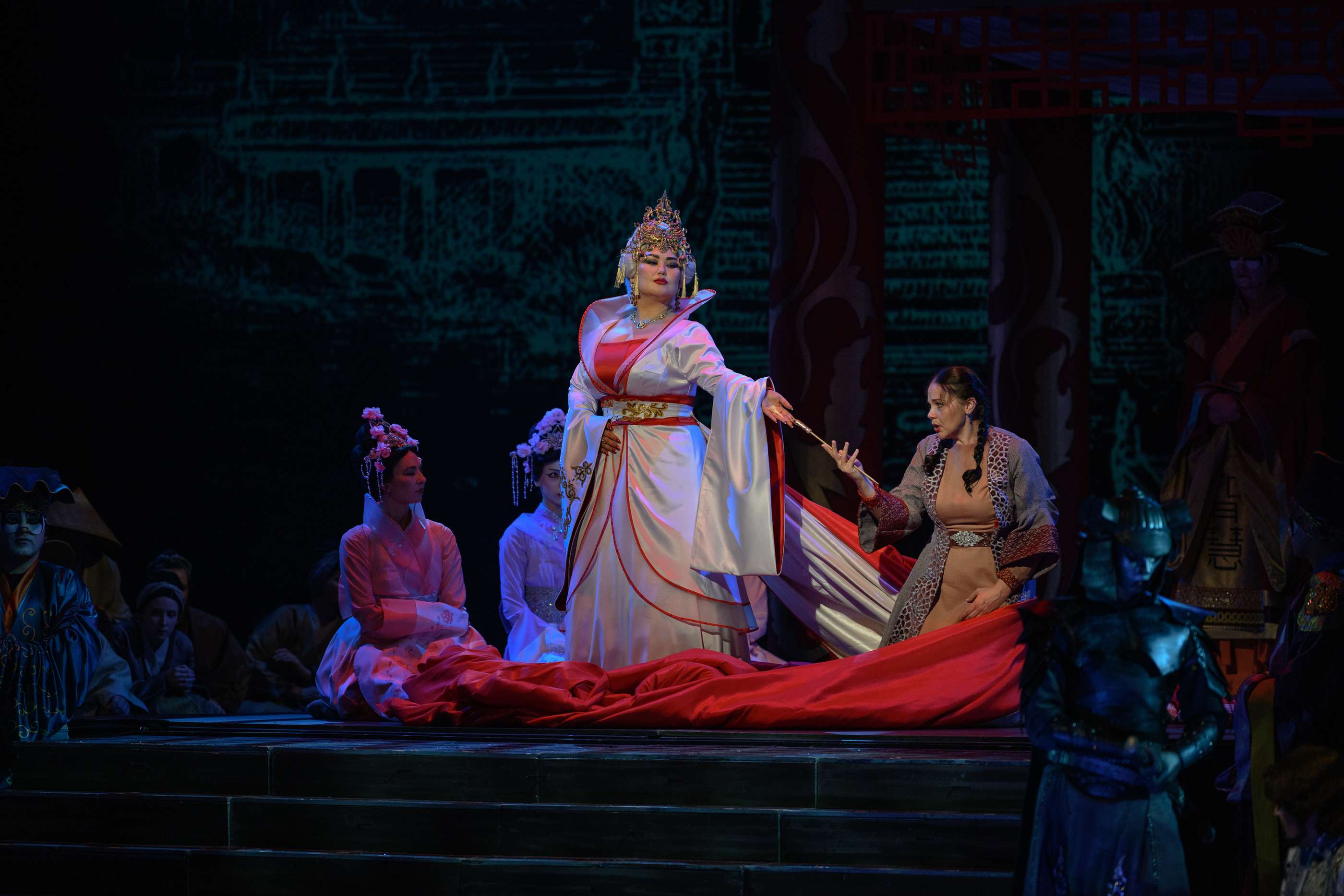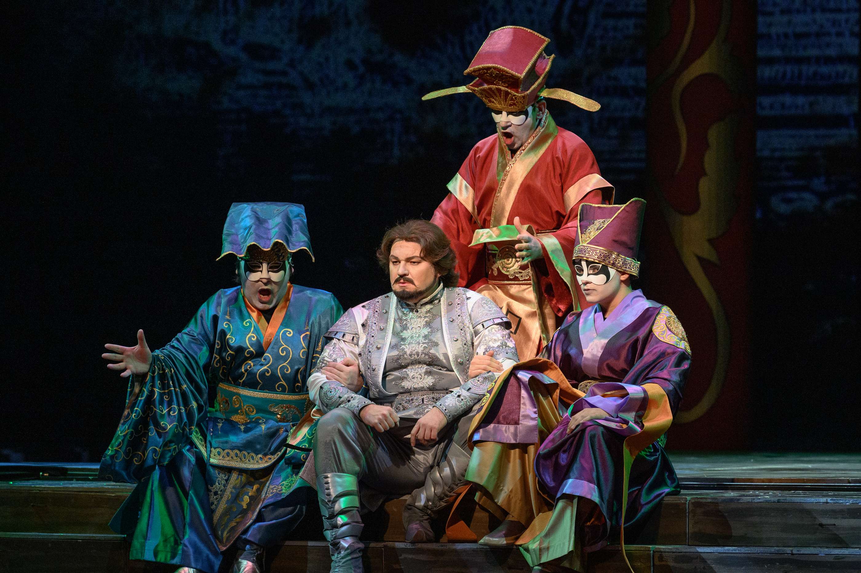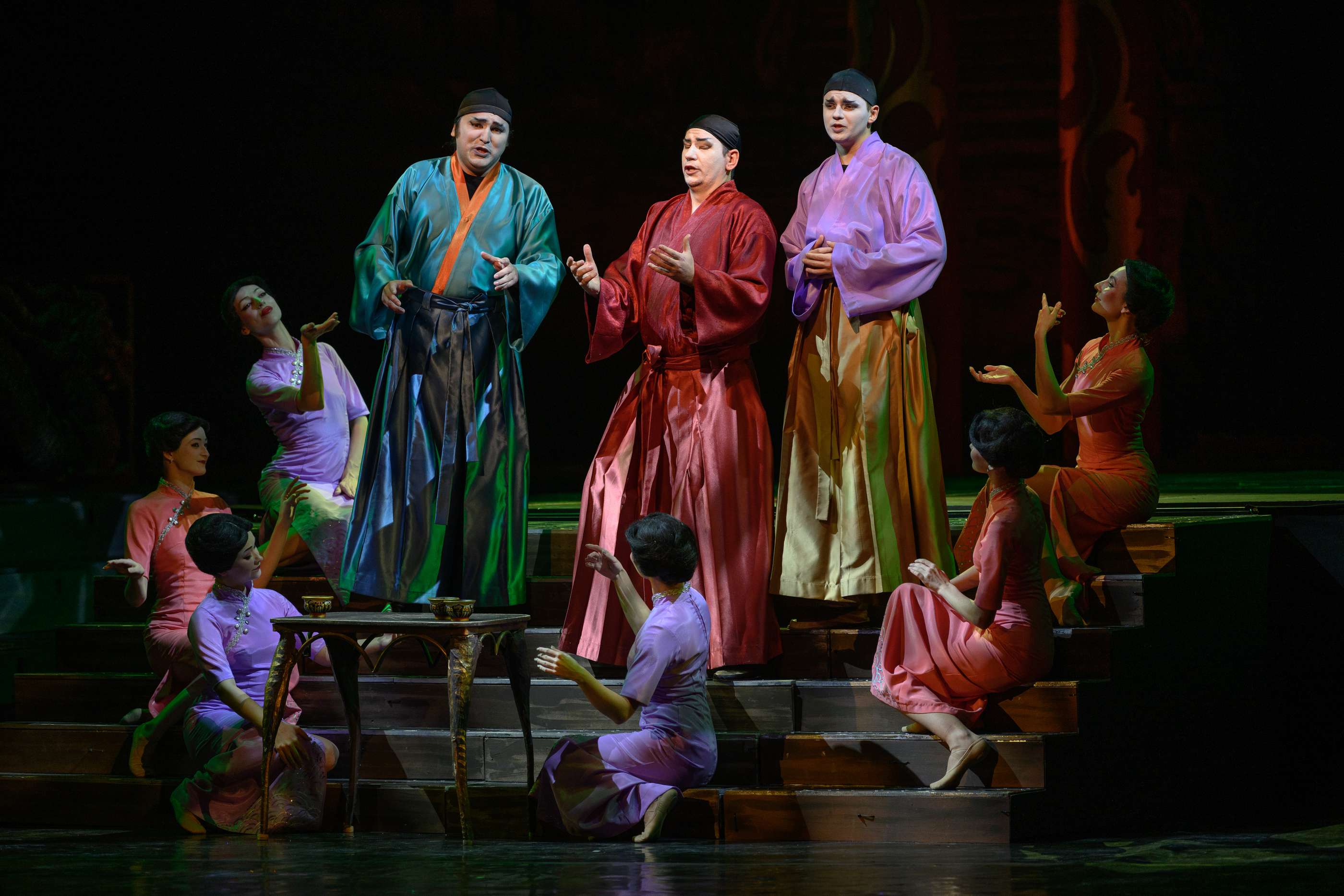 В продолжение разговора о достоинствах премьеры продолжится и перечень приятных сюрпризов. Третий из них – готовность труппы к музыкальному языку Пуччини. Казалось бы, ничего удивительного – в театре не первый год идут «Мадам Баттерфляй» и «Тоска», было на чем освоиться, однако «Турандот» существенно отличается от прочих опер мастера, тут его письмо становится еще более изощренным, улавливающим веяния экспрессионизма. Донести все детали без потерь не так-то просто, но солисты Елена Лодыгина (Лиу), Олег Диденко (Тимур) и Андрей Ковалев (Пинг) явили высокое мастерство, продемонстрировав итальянскую полнокровную манеру звуковедения, красоту тембров, точность фразировки и цепляющую выразительность вокализации в целом.