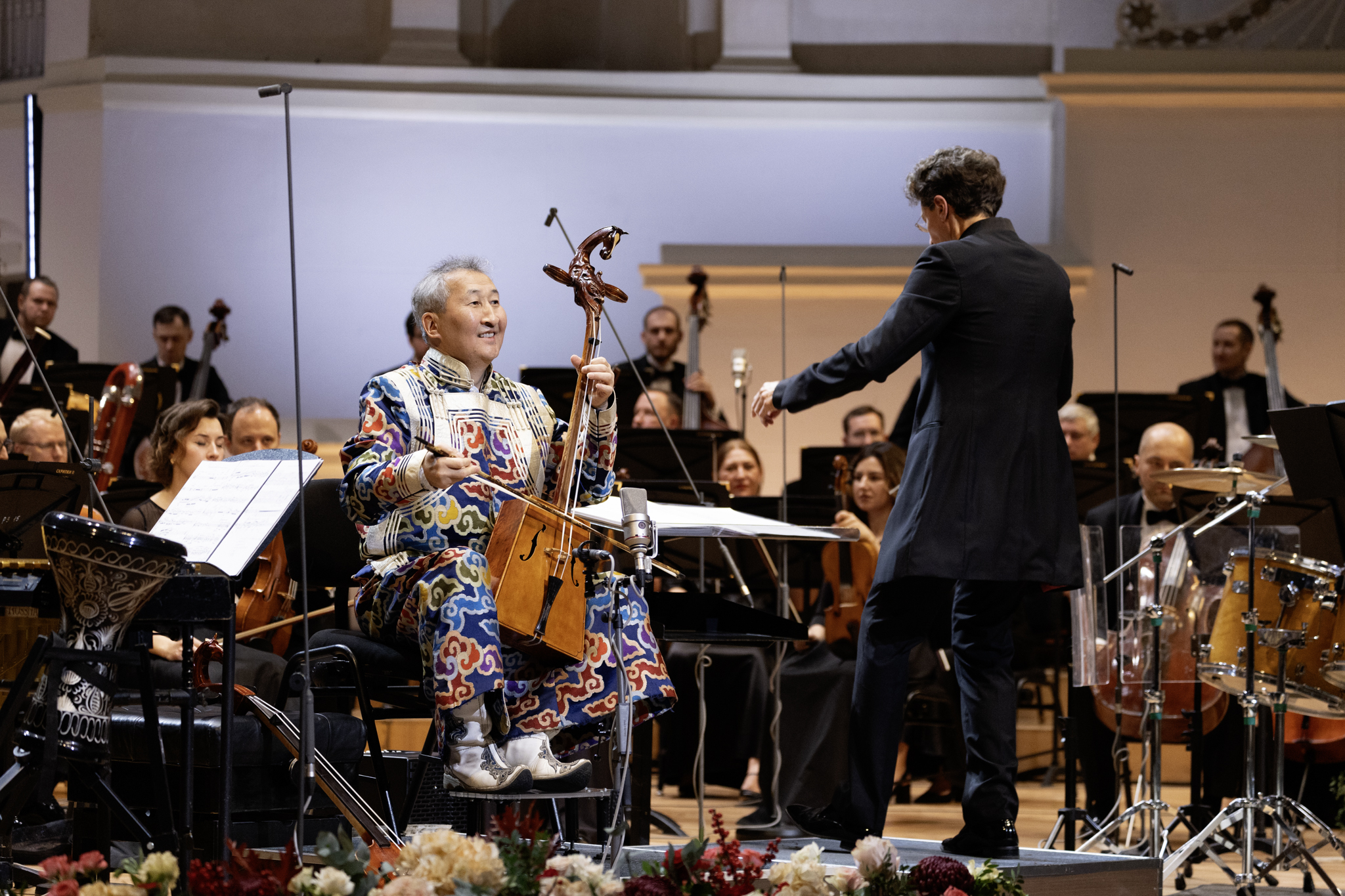 За исключением этого единственного европейского опуса, первое отделение было отдано восточной экзотике. Иорданец Фади Хаттар играл сочинения Риада Аль-Сунбати, Мохамеда Эль-Касабджи и Мохамеда Усман Сидика – что-то на виолончели, а что-то на ребабе – дальнем ее арабском родиче. Слушать все это было весьма любопытно, как и Концерт для морин хуура с оркестром монгольского композитора Бямбасурэнгийна Шарава в исполнении Энхжаргала Дандарваанчига.