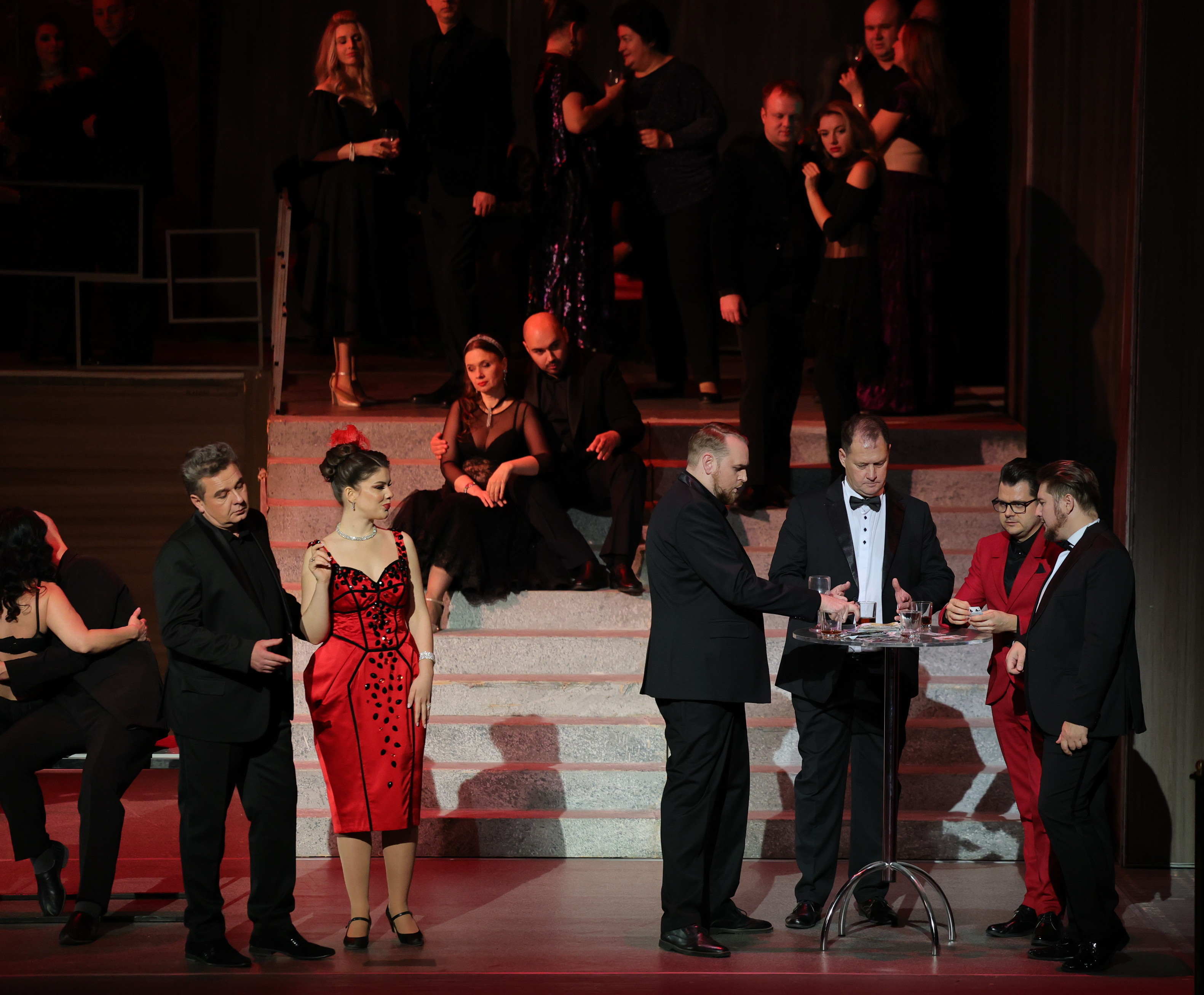 «Травиату» переодели в современное – что это дало мелодраме Верди? Прежде всего – ощущение когнитивного диссонанса: да, сама фабула, то есть история дамы с камелиями вполне может иметь место и сегодня, однако все остальное в опере противится такому переносу. Манеры, стиль поведения героев, характер их отношений, жесты, взгляды, мимика – абсолютно из другой эпохи, они вопиюще противоречат музыкальному строю, атмосфере творения Верди, рисующего романтическую картину (путь и с долей реализма – композитор знал цену нравам своих современников), в то время как зритель видит жестко-циничные будни дня сегодняшнего. Да, а где же мобильные телефоны и прочие гаджеты, если мы в XXI веке, – почему герои обмениваются письмами в конвертах и никогда не знают, где кто находится и когда и откуда кого ожидать?..