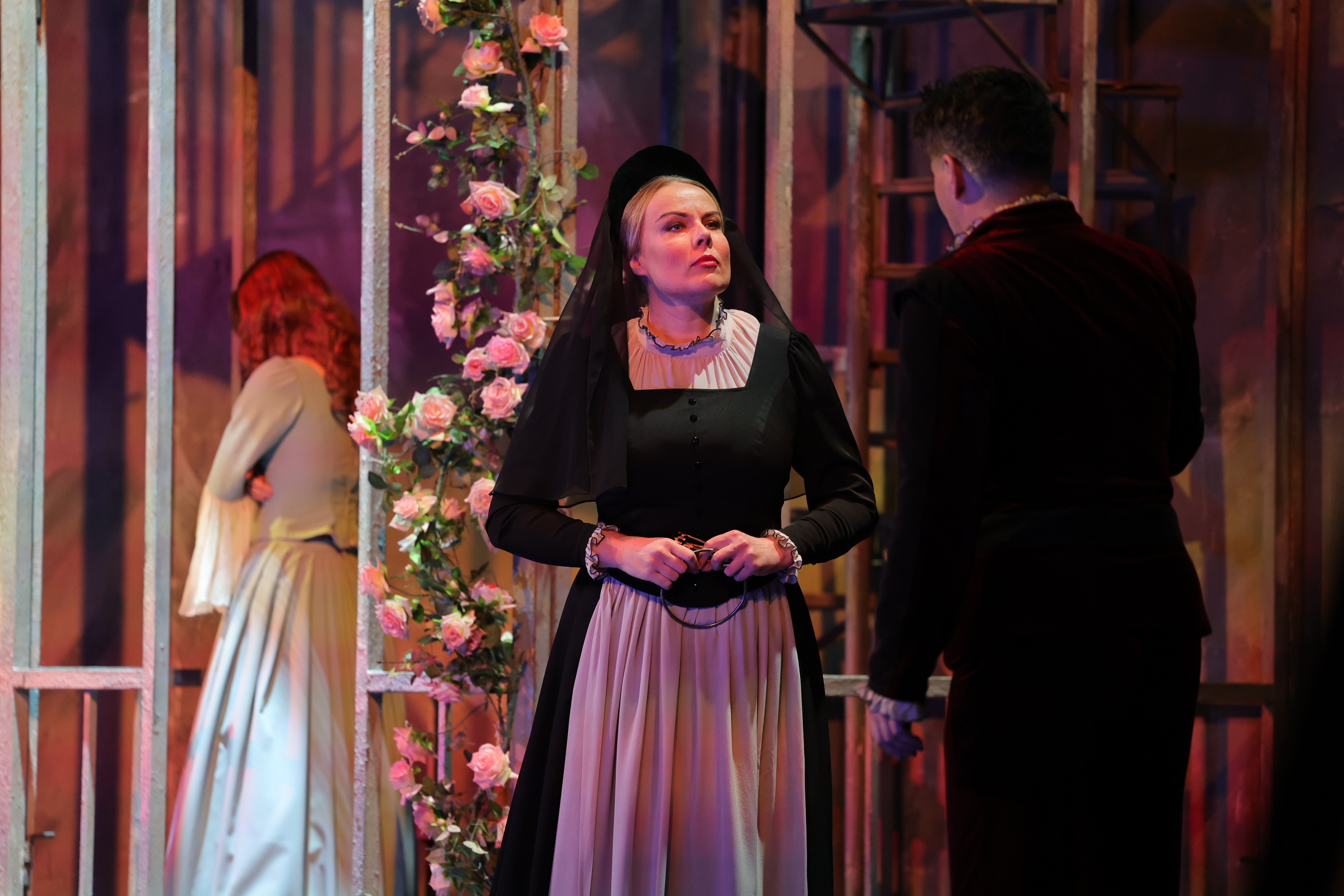 Ноябрьский показ – дебют в заглавной партии Анастасии Луриковой, ученицы Людмилы Колос, прославленной белорусской колоратуры 1970-80-х, чей юбилей театр отмечал именно этим спектаклем. Приятный и техничный, легкий голос молодой певицы справляется со всеми трудностями партии – лишь в трагедийных эпизодах ему явно не хватает драматической краски, но такова общая проблема колоратур в этом материале. Первый акт Лурикова пока исполняет, как хорошо выученный урок (что простительно для дебютантки), однако по ходу спектакля обживается на сцене, и во второй половине оперы уже можно говорить об образе, не только о вокале.