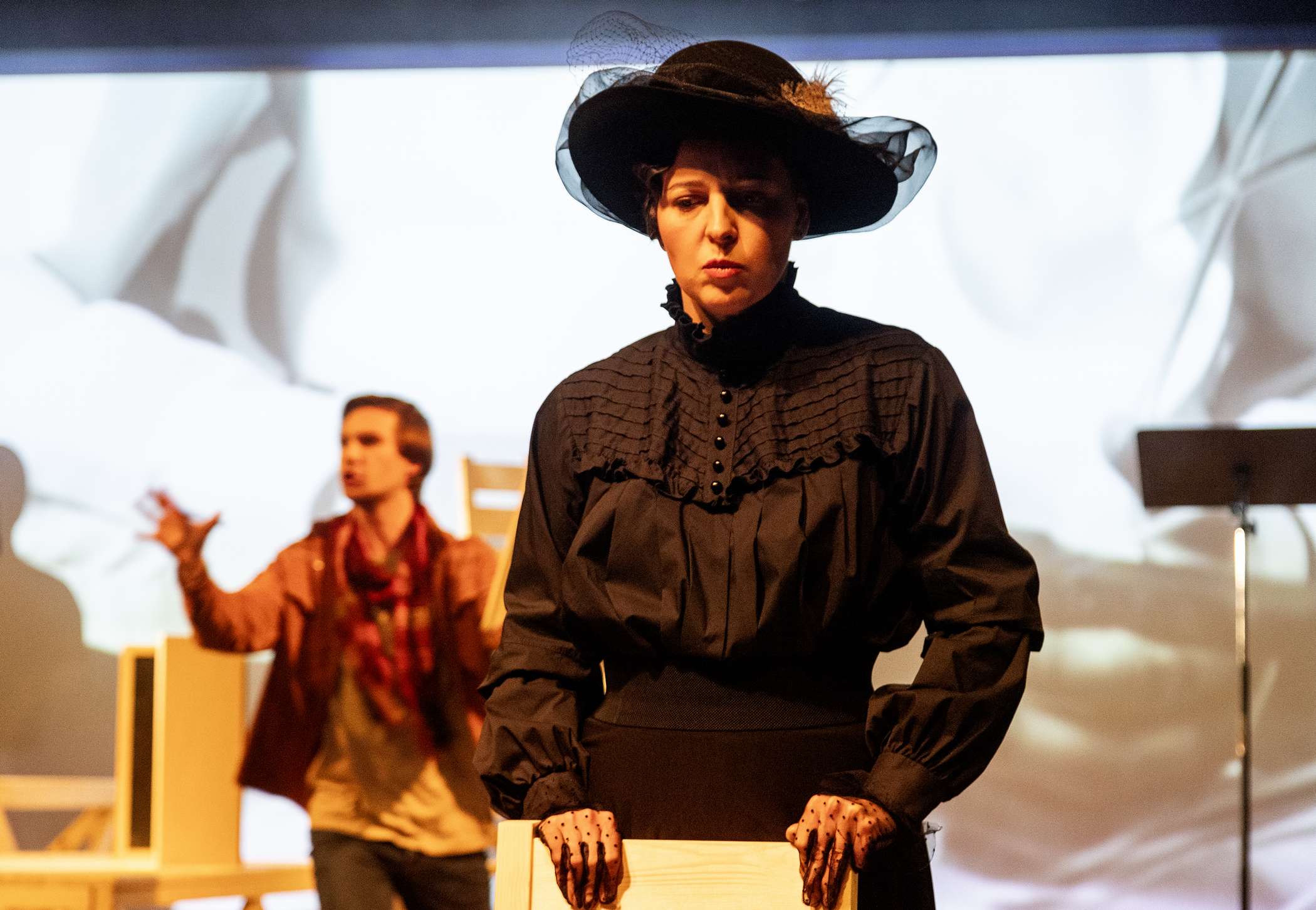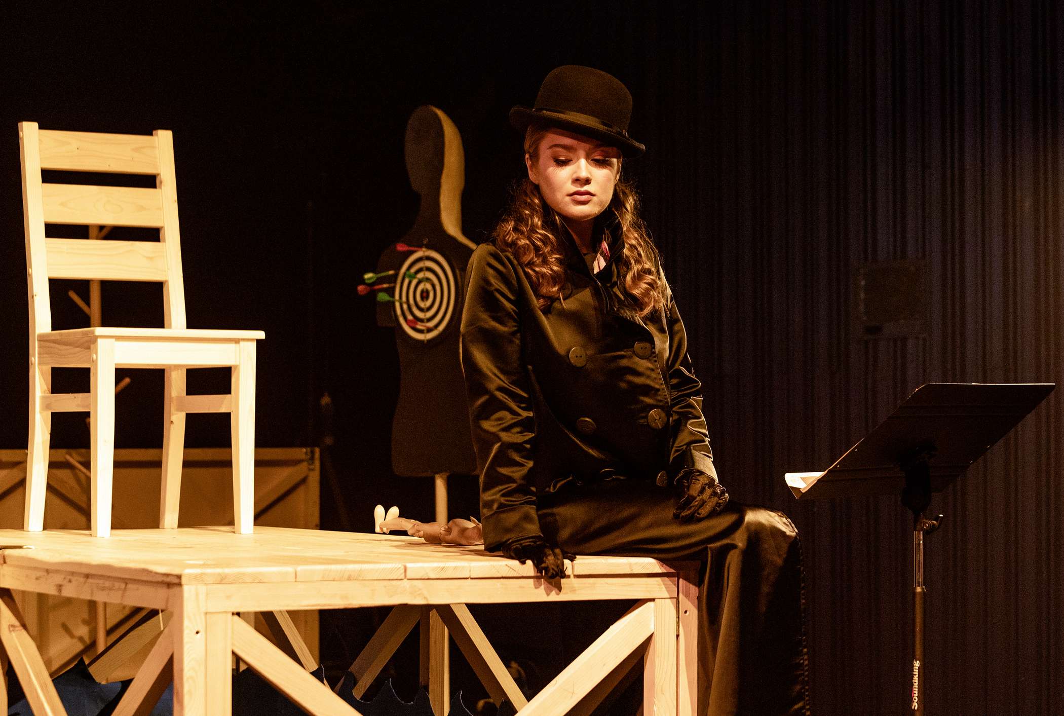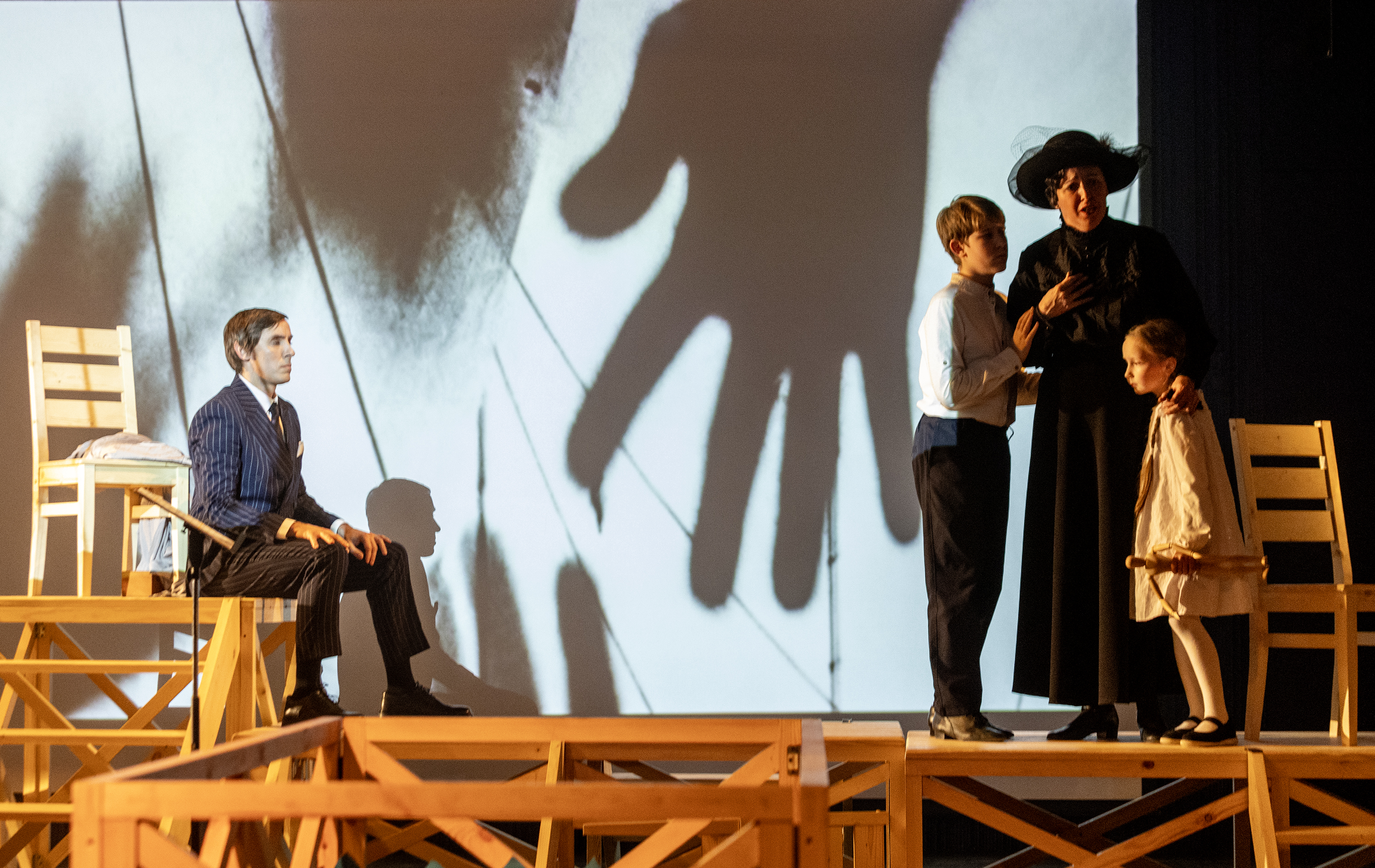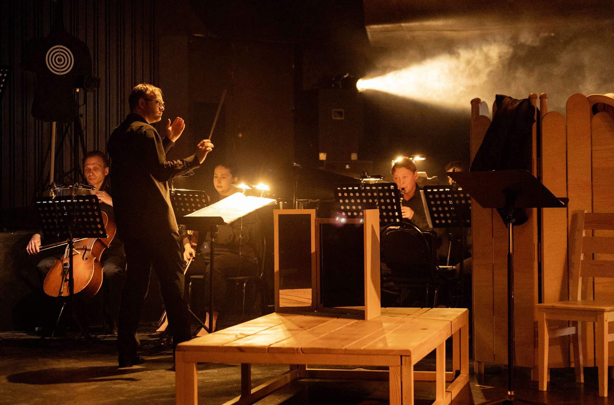 Непростую стилистику уверенно штурмует маэстро Сергей Михеев и солисты театра, все трудности им нипочем – и неоднозначная мелодика, и сложные ритмы, и эксцентричные вокальные украшения, и необходимость использовать необычные тембральные краски. Михаил Заболотский (Режиссер), Олег Банковский (Отец), Мария Чудовская (Мать), Анна Малькина (Падчерица), Вячеслав Леонтьев (Сын) и Максим Дорофеев (Мадам Паче – травестийный образ наоборот, возможно, с отсылкой к прокофьевской Кухарочке) – все они не просто свободно вокализируют, но и убедительно играют, создавая диковинные образы соответственно причудливому замыслу композитора.