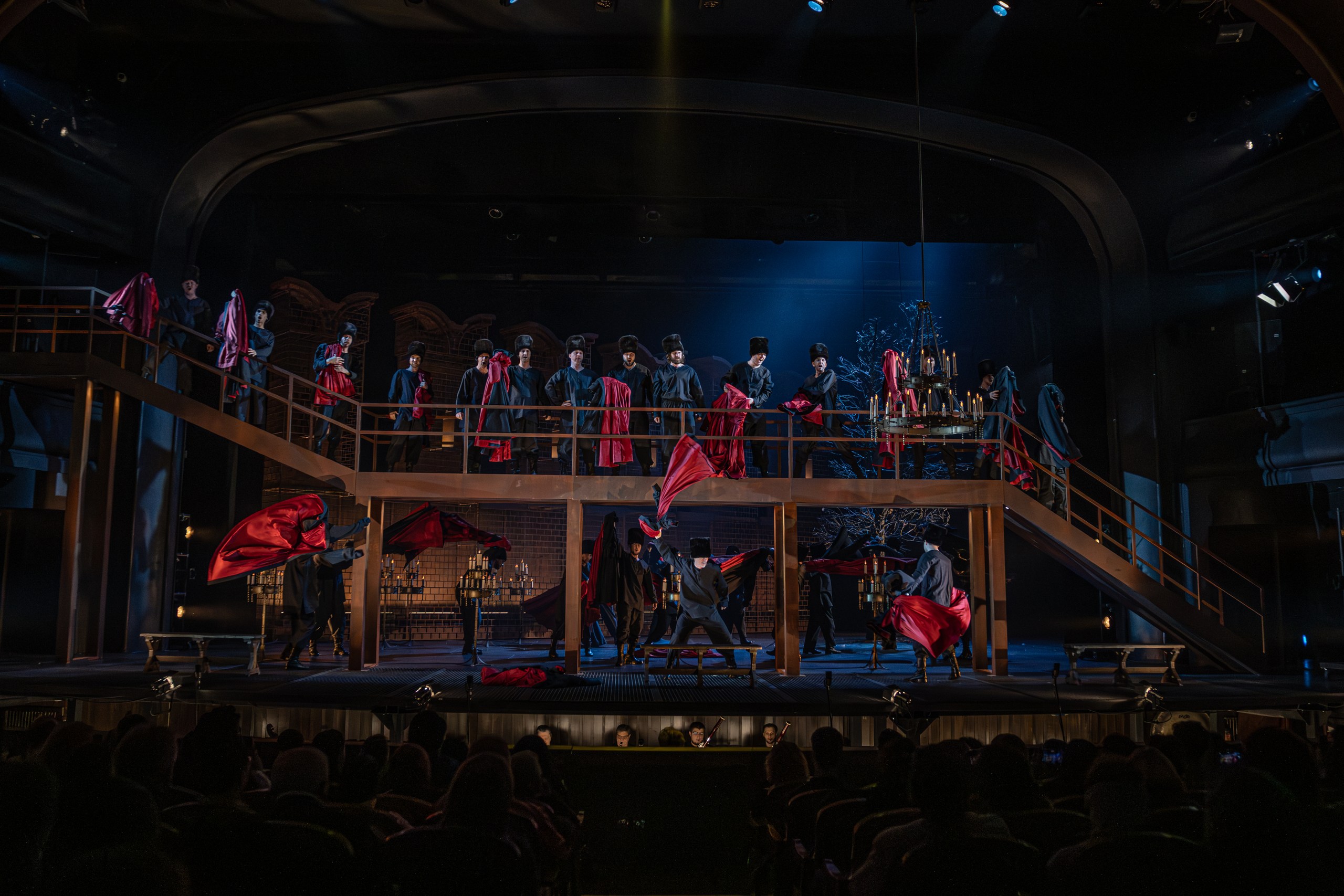 Пока же в строе не все ладилось. Глаз было не оторвать от богатыря Грязного в исполнении хорошо выученного, с красивым тембром (в котором много сочного мяса и чуть-чуть — пустоватых верхов) Чингиса Баирова. В речитативе он — чуть не царь и бог. Но как придет время пространно излить душу, слышалась нехватка внутренней страсти, без которой Грязной не Грязной. Другая яркая героиня — Анастасия Лепешинская в партии Любаши, сумевшая прежде всего в вокале выказать силу характера и душевную боль. Может быть, и не каждая минута оперного существования стала для нее звездным часом, но спетая на тысяче оттенков piano, искусно фразированная песня «Снаряжай скорей, матушка родимая» — из числа редкостных удач. Как выразился на этот счет кровавый Малюта, «сердце замирает»... Схожим центром притяжения ее «соперница» Мария Буйносова станет разве что за счет цвета — ее единственную выведут на сцену в светлом. Но вокально персонажем она окажется одноообразным, больше занятым рассматриванием ноток, чем поиском средств для изображения своих полярных состояний — сияния безмятежной юности и сумерек угасающего сознания. По одну руку с нею — старик Собакин, спетый Владимиром Кудашевым ровно, благородным тоном и без сколько-нибудь существенных изъянов, по другую — «жених» Алексей Неклюдов, в школе состоятельный, однако даже намеком не открывший, что ж это за фрукт такой Иван Сергеич, особо отмеченный царем как надежда государства? Не сумел музыкально вылепить масштабный образ Малюты Скуратова Константин Федотов, и по-тёточному, почти без слов спела партию Домны Сабуровой прима «Новой оперы» Марина Нерабеева. Кого можно было бы совсем не заметить в спектакле, так это Бомелия в бесцветном исполнении Максима Остроухова. Но он как раз шанса остаться незамеченным не оставлял.