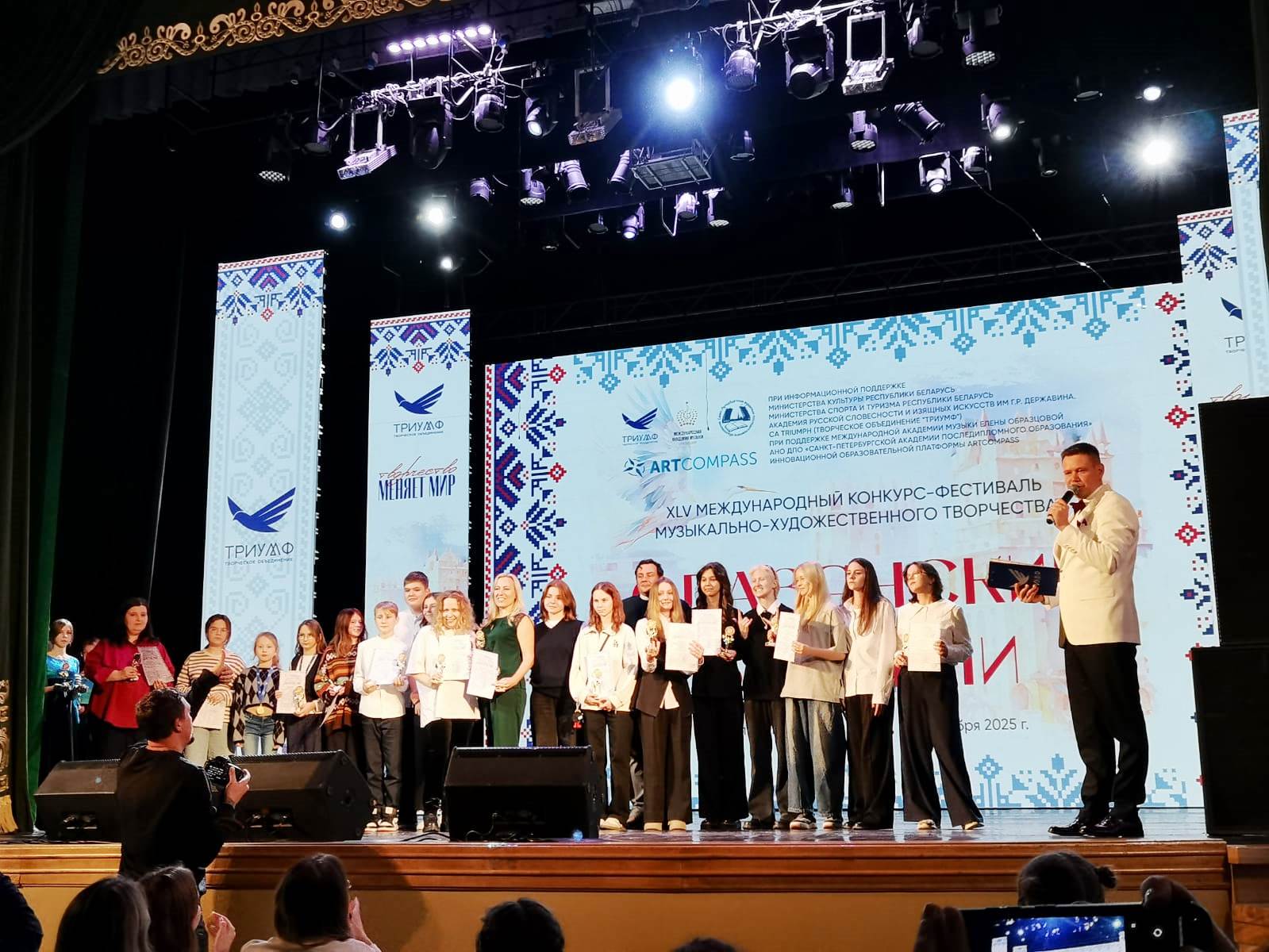 Кульминацией поездки стала церемония награждения. Ансамбль «Орнамент» завоевал звание лауреата 1 степени, солисты стали обладателями почетного 2 места, юные художники показали хорошие результаты, заняв 1 и 2 места.