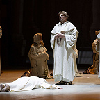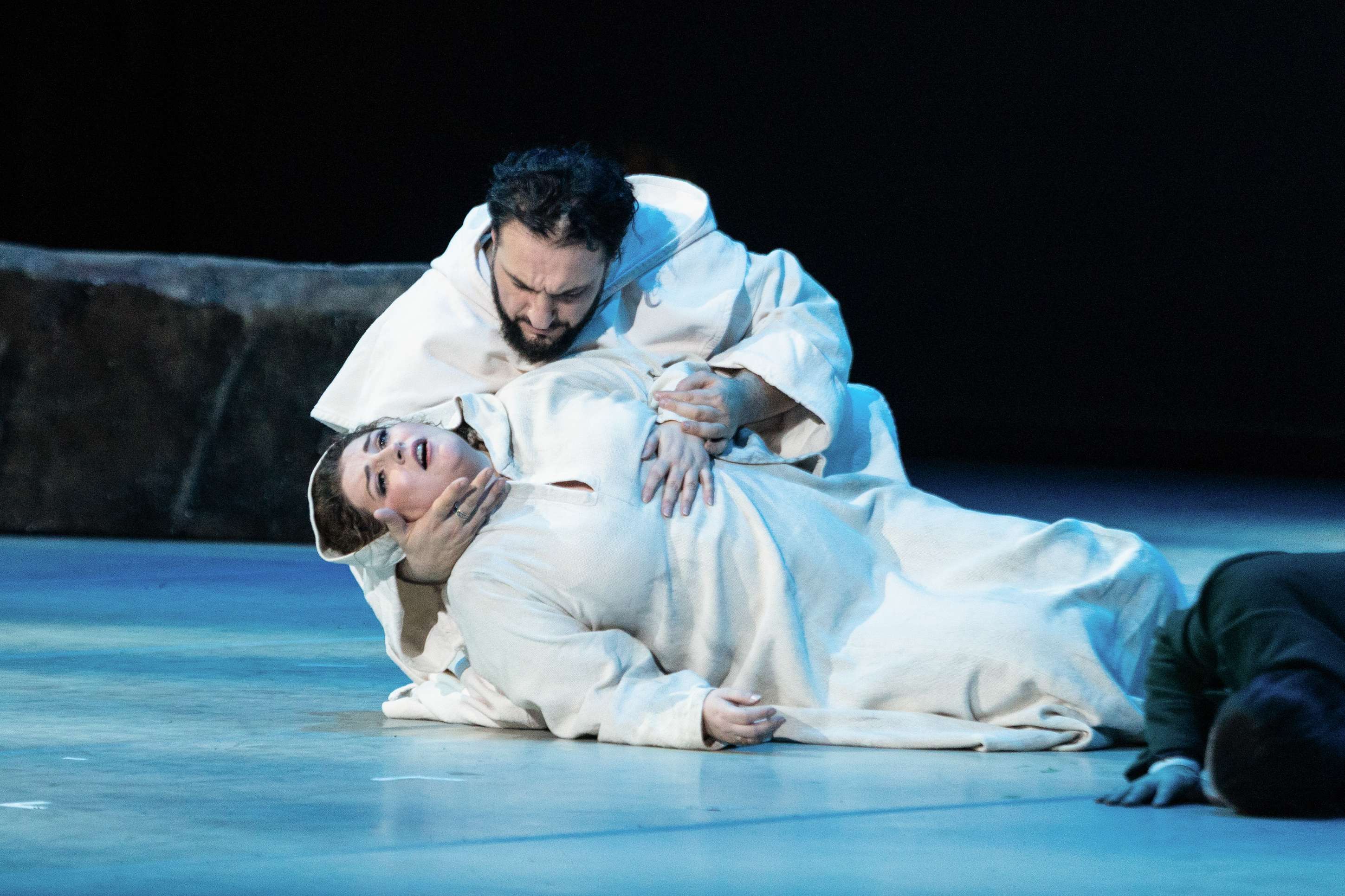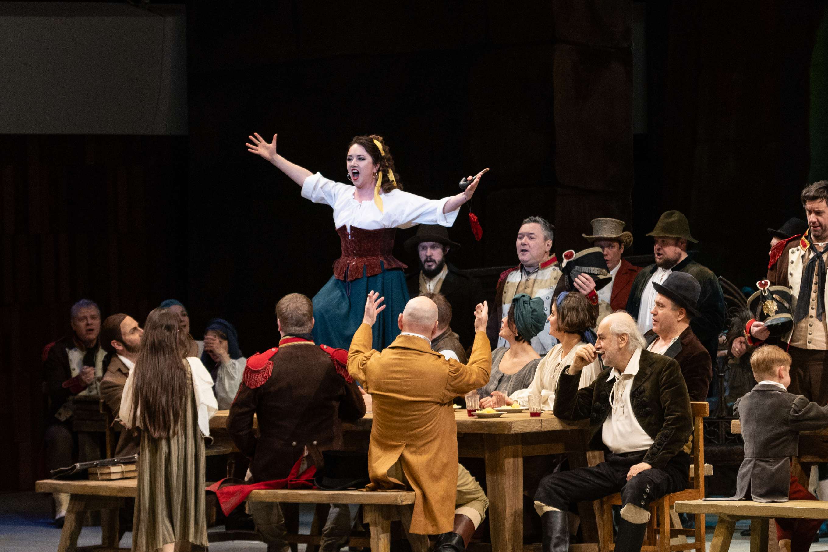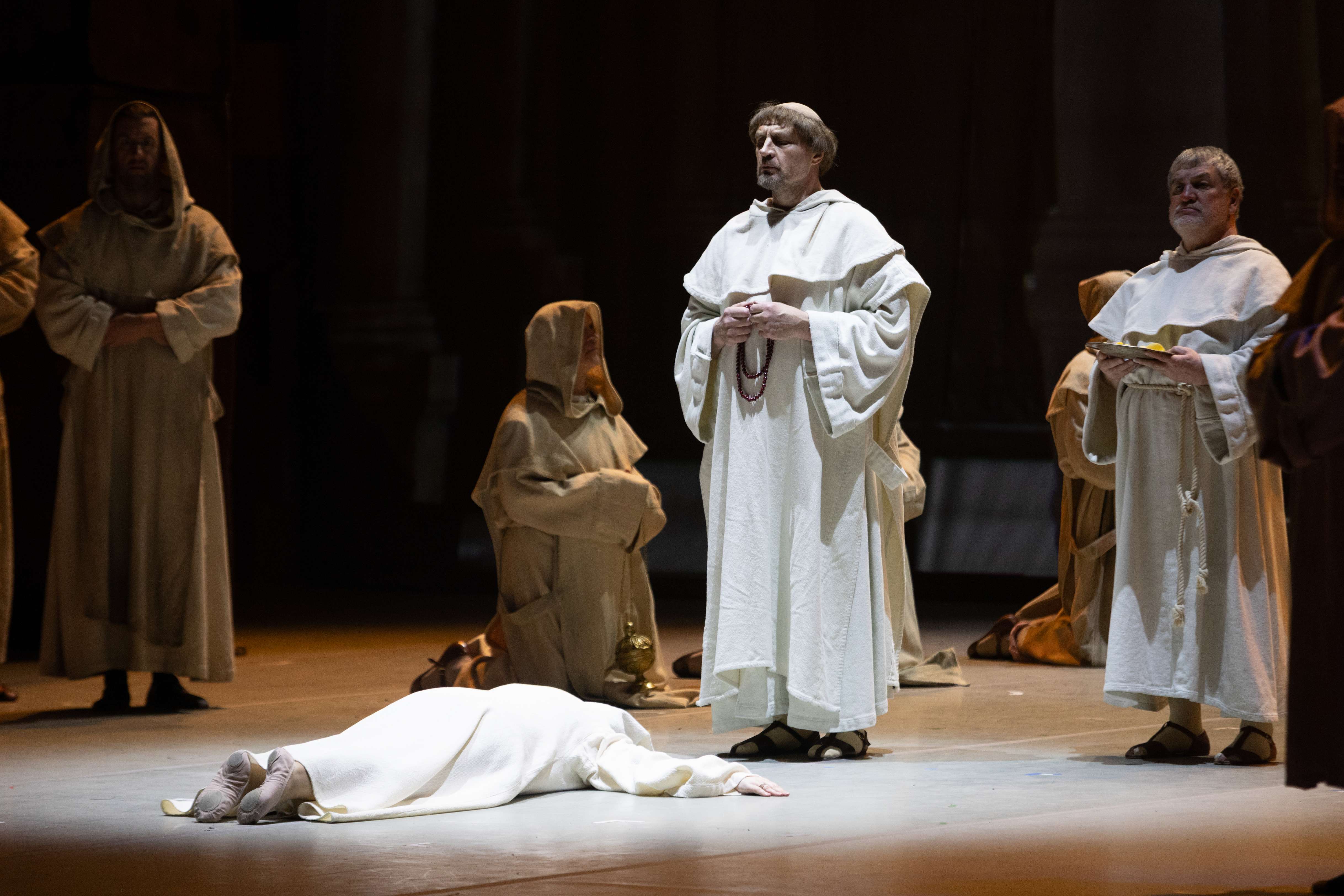 Как и многие вердиевские оперы, «Сила судьбы» – театр голосов: без больших и красивых вокальных «инструментов» сделать эту партитуру адекватной замыслу невозможно. Мариинка выставила сильный каст. Пожалуй, лишь Дарье Рябоконь (Прециозилла) несколько не хватало мощи и масштабности звучания – все было спето аккуратно и с характером, но чуть экономно по звуку. Прочие певцы предъявляли вердиевскую кантилену и вердиевскую экспрессию весьма ярко и убедительно. Даже исполнители второстепенных партий радовали – например, мягкое «органное» звучание баса Олега Сычева (Отец-настоятель) или утрированно гротескное, очень заводное по комедийным краскам пение Александра Никитина (фра Мелитоне).