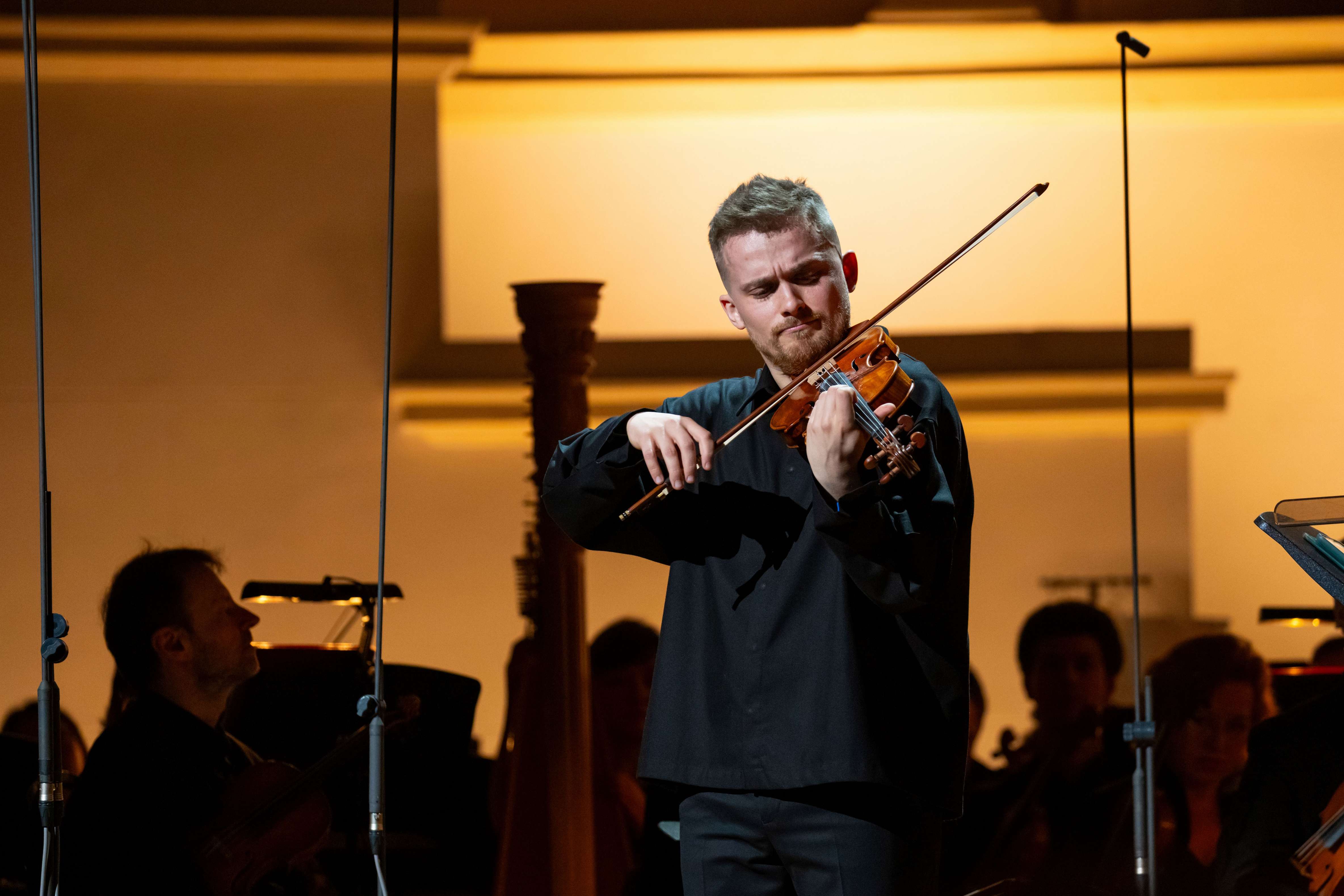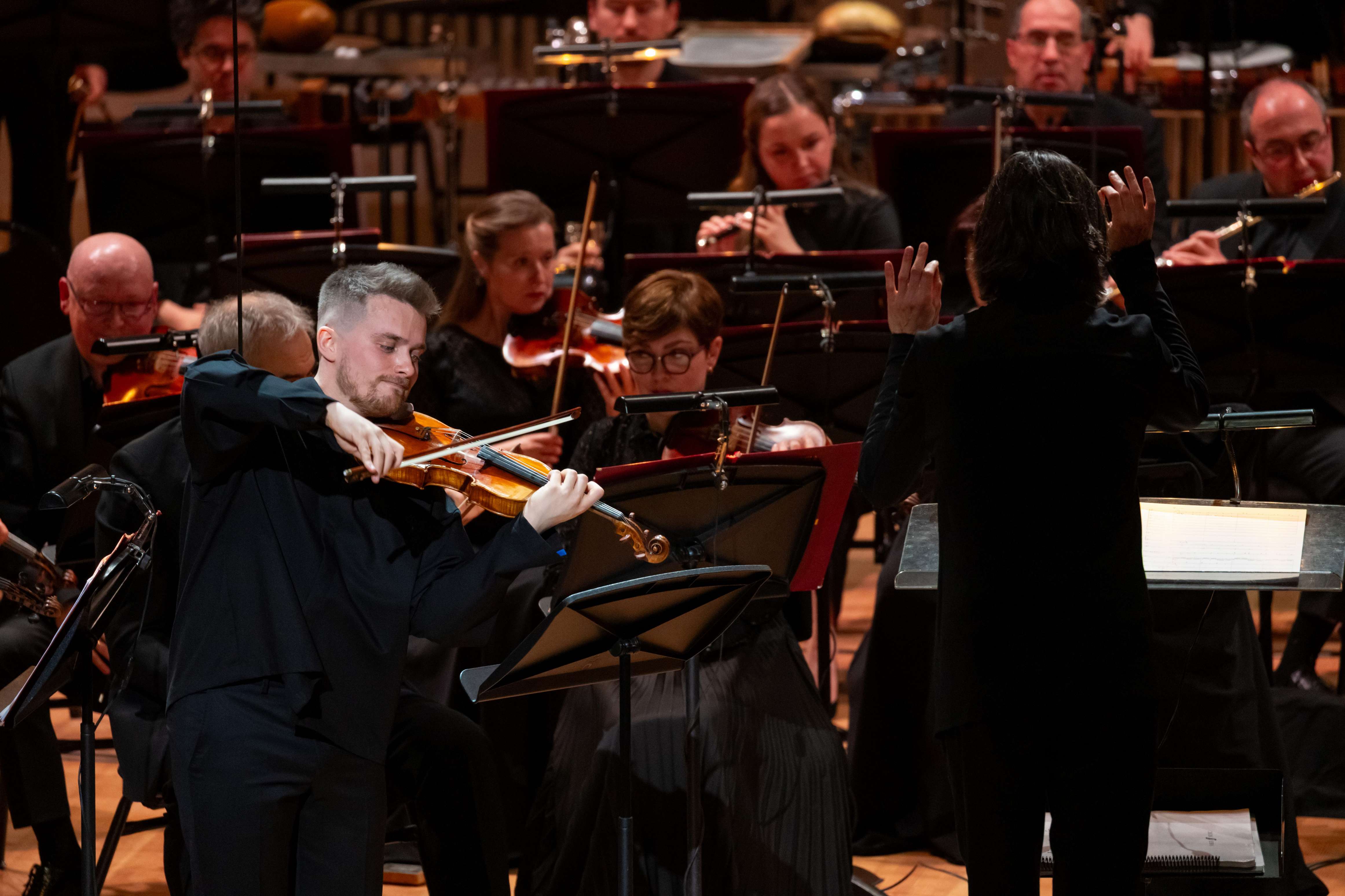 Инициатором реконструкции и первым исполнителем Концерта для скрипки с оркестром Попова стал замечательный скрипач Дмитрий Смирнов. Обнаружив в архиве Российского национального музея музыки рукопись со всеми черновыми набросками, он загорелся идеей исполнить это в том или ином виде и поделился ею с Филиппом Чижевским. Тот в свою очередь обратился с предложением довести партитуру до кондиции к Валерию Воронову, на чьем счету уже имеются небезуспешные опыты «соавторства» с давно почившими композиторами. И Воронов мастерски реконструировал концерт, причем последнюю часть, по которой имелись лишь совсем небольшие наброски, фактически написал сам, используя также и фрагменты других сочинений Попова. Получилась в целом достаточно целостная партитура, а некоторая стилистическая разноголосица между частями объясняется в первую очередь тем, что автор возвращался к этой работе в разные периоды жизни. Но, даже зная всю предысторию, ощутить «швы» на слух чрезвычайно трудно, если вообще возможно. В итоге мы обогатились еще одним выдающимся образцом музыки двадцатого столетия, ставшим, кстати, помимо всего прочего, еще и одним из самых протяженных скрипичных концертов (исполнение длилось 52 минуты). Великолепно сыгранный Дмитрием Смирновым и ГАСО под управлением Филиппа Чижевского, он произвел по-настоящему сильное впечатление, несколько даже выламываясь из рамок «другого пространства», и продолжит, хотелось бы полагать, свою жизнь уже в пространстве обычном.