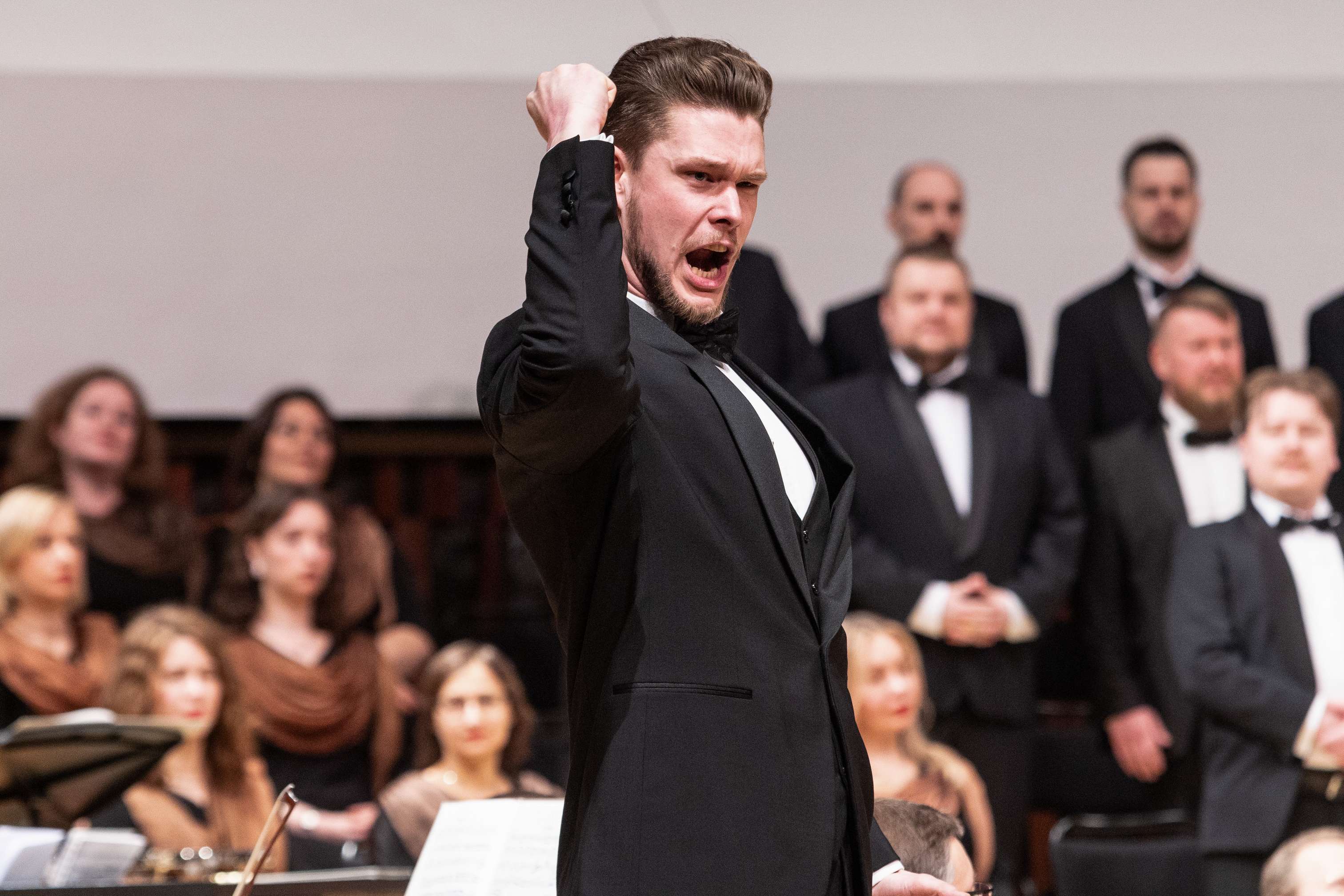 Гергиев – прекрасный интерпретатор Римского, о чем можно было, наверное, лишний раз не напоминать, однако удержаться трудно, сравнивания концерт в «Зарядье» с впечатлениями от второй премьерной серии в Мариинском театре, которую в январе провел другой дирижер (Заурбек Гугкаев). На этот раз оркестр буквально околдовывал в ориентальном втором акте и одновременно смешил прямолинейностью в многочисленных сатирических эпизодах. Оглушающие тутти в момент прибытия Додона и Шемаханки в третьем акте, когда в зале все грохотало и звуки разнузданного шествия буквально вдавливали в кресла, – один полюс; другой – нежнейшие пиано, эфирные переливы арф, и в целом очень бережная подача голосов солистов, которых всегда было отлично слышно, а благодаря их качественной дикции бегущая строка над сценой была не нужна. Форма оркестра – феноменальная, что было ясно с первых звуков труб во вступлении. То же можно сказать и о хоре (хормейстеры Константин Рылов и Никита Грибанов), который не только превосходно, по-театральному игрово пел, но еще и отчаянно лицедействовал.