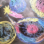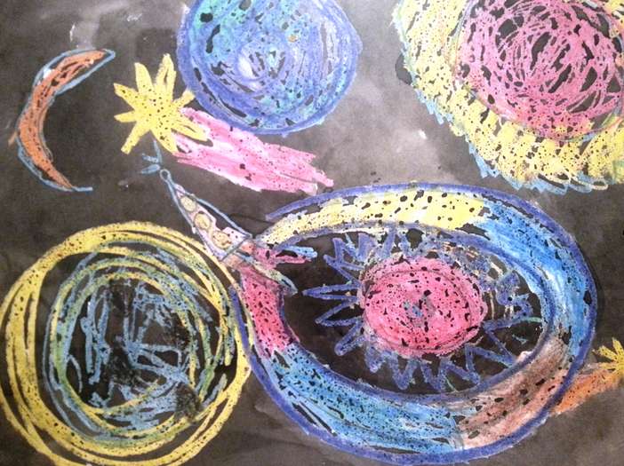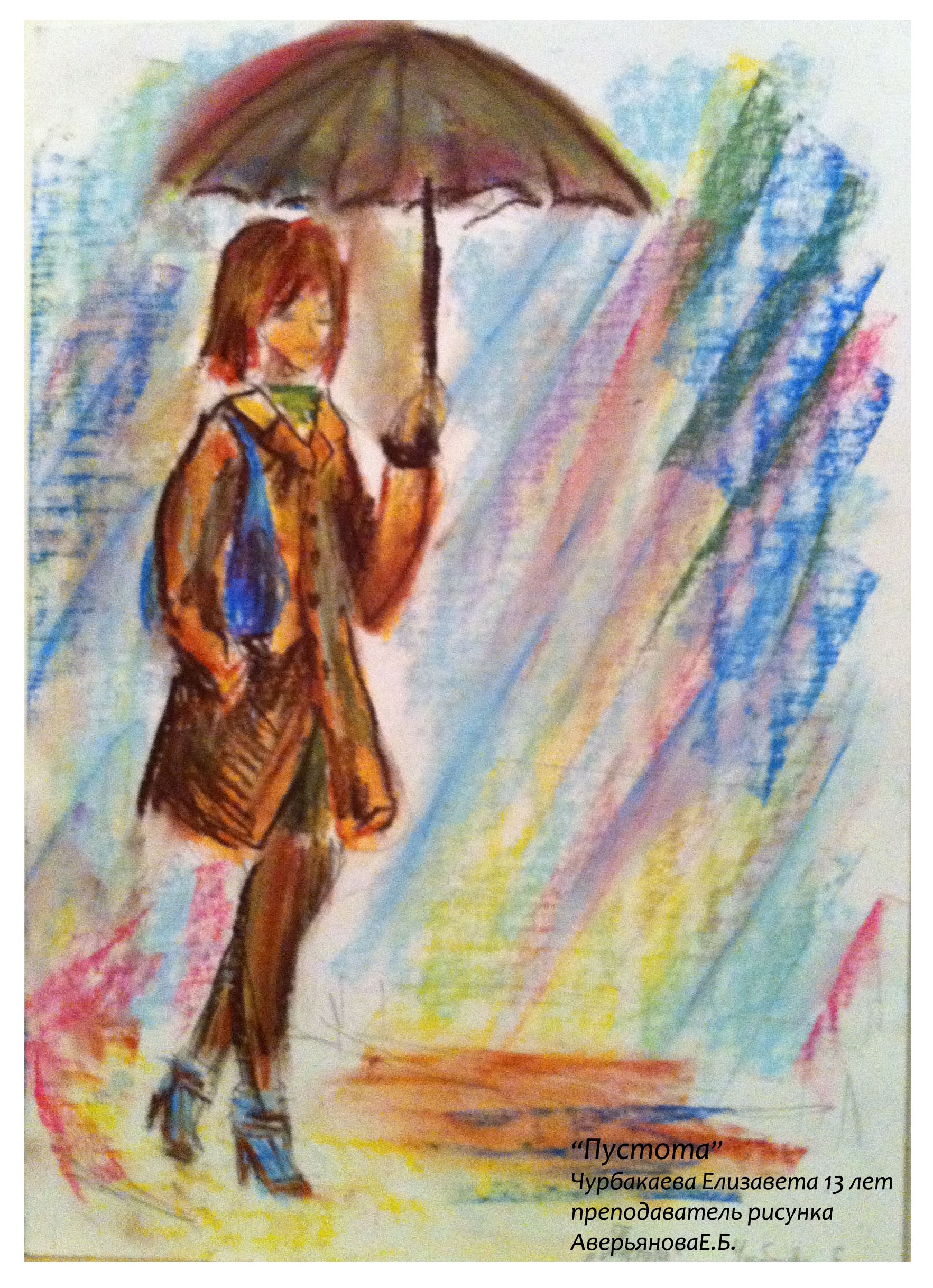 Особый интерес представляет работа с детскими рисунками. В рамках проекта «Взаимодействие искусств в образовательном пространстве школы искусств» ученики художественного и музыкального отделений школы на совместных встречах делают открытия в создании визуализации образов и сжатия информации. Рассматривая рисунок «Пустота» (девочка под зонтиком), педагог ведёт с ребёнком разговор о том, как «звучит» пауза. Такие символы как ноль, вакуум подводят к философским понятиям, которые затем находят отражение в музыке.