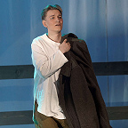 Создатели спектакля затронули хрестоматийную и одновременно сложнейшую в этическом и нравственном, тем более – художественном осмыслении тему войны. Их единственно верным решением было следовать за музыкой, в которой Валерий Гаврилин со свойственной ему верностью последней истине настолько обезоруживающе точно и нервически тонко передал весь мучительный комплекс состояния пишущего о войне, знающего, что она есть на самом деле. С одной стороны, здесь красота, чистота, ясность, легкость и свет, неподдельная искренность народного мелоса, сияние мира, надежд и солнца, с другой – ад разрушений, которые несет с собой война, и больше ничего, никакой радости победы, доставшейся ценой миллионов смертей. Режиссер Мария Павельева действовала в теснейшей связи с динамикой драматургии образов художника Наталии Клёминой, создавшей для «Военных писем» полное воздуха и простора пространство карандашно-акварельных рисунков, словно бы взятых из этой самой военной переписки. Вот речушка, березки, косогор, домики, столбы, цветущие поля, церквушка, тут же – наблюдающие ангелы. Цельность музыкально-театрального шедевра заключалась в том, что в такой же пронзительно акварельной, сейсмографически чутко реагирующей гамме звучал и оркестр под управлением Петра Максимова. Художник по свету Александр Рязанцев написал нежнейшую, дышащую, вдохновенную, живо реагирующую световую партитуру, а балетмейстер-постановщик Ольга Красных – колоссальной силы хореографию, сотканную из простейших, но фантастически прицельных движений языка тела. Что ни номер – то откровение, чему в громадной степени способствовали и стихотворные тексты Альбины Шульгиной, любимого соавтора Гаврилина, нашедшего к ним, кажется, единственно верный интонационно-ритмический ключ.