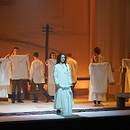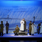 Любая империя сильна контрастами, тем более зазеркальная. «Военные письма» на музыку Валерия Гаврилина стали в ней сенсацией того же масштаба, какой много лет назад оказалась «Золушка» Россини в постановке Александра Петрова. При всей несопоставимой, колоссальной эстетической разнице опусов, «Военные письма» взяли высокую, если не высоченную художественную планку, не оставившую сомнений, что в театре родился новый шедевр. Он оказался настолько велик по силе эмоционального воздействия, что сложно подбирать слова для его описания, как после столкновения с чем-то доселе невиданным. За час с небольшим тебя так вдавливает в кресло, что лишает дара речи, возможности дышать, ибо к горлу подкатывают не комки даже, а целые камни, слезы душат, проливаясь горьким потоком. Сердце сжимается, как губка, с каждой следующей песней, реагируя на музыку, слова, действие, картинку.