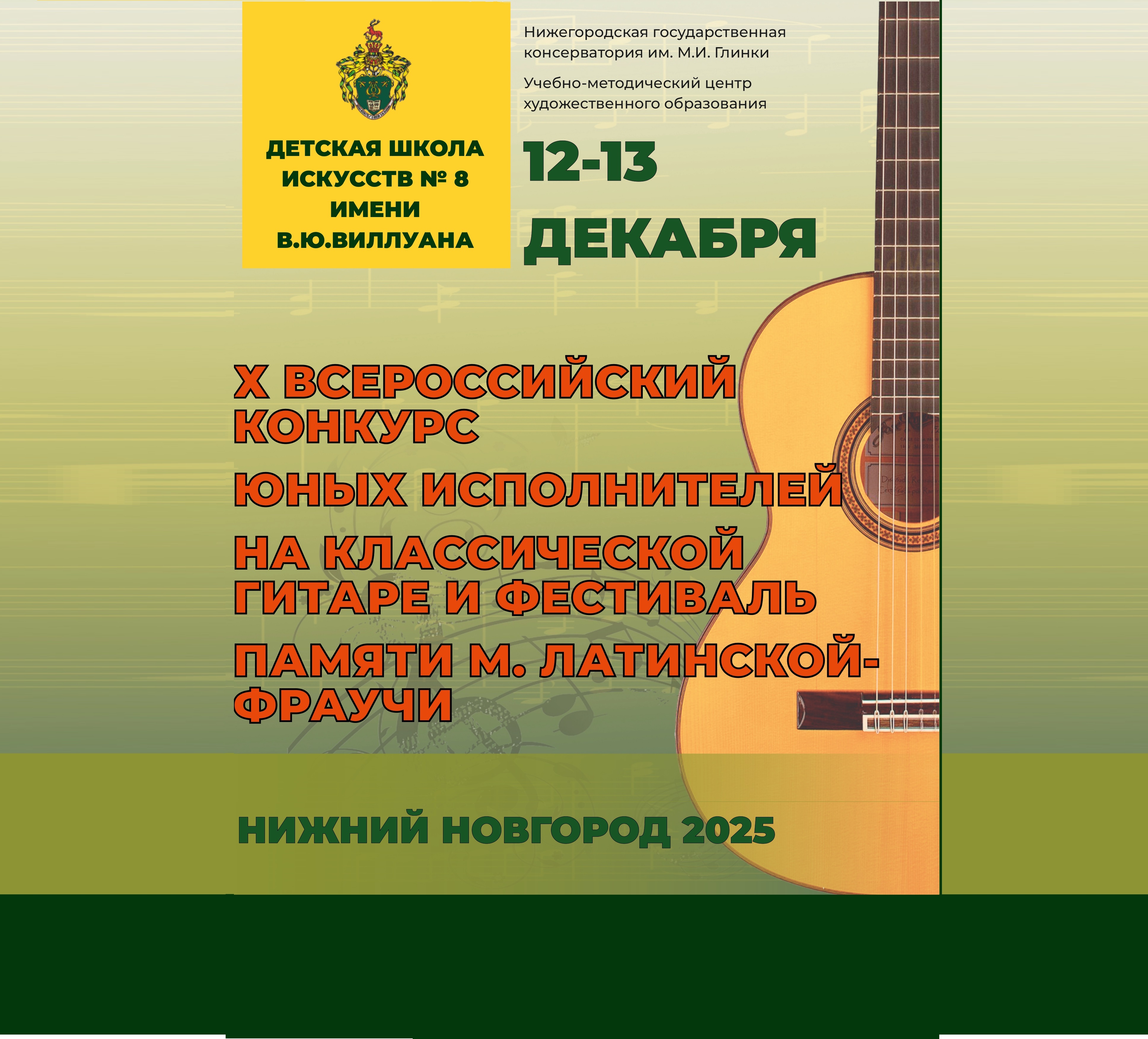 Нижегородская земля вырастила немало выдающихся мастеров гитарного искусства. Сегодня их юные последователи могут продолжить традицию гитарного исполнительства, приняв участие в конкурсе юных исполнителей на классической гитаре в ДШИ №8 имени В.Ю. Виллуана.