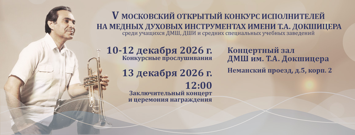 Московский открытый конкурс исполнителей на медных духовых инструментах имени Т.А. Докшицера стал визитной карточкой Московской ДМШ, носящей имя великого трубача. Конкурс зарекомендовал себя как один из сильнейших в области медных духовых инструментов, объединив исполнителей среди учащихся ДМШ, ДШИ и колледжей со всей России – от Калининграда до Владивостока. Конкурс успешно решает масштабные задачи: выявление талантливых исполнителей, обмен опытом и повышение уровня профессиональной подготовки преподавателей, укрепление творческих контактов между учащимися и студентами образовательных учреждений дополнительного, среднего профессионального и высшего образования.