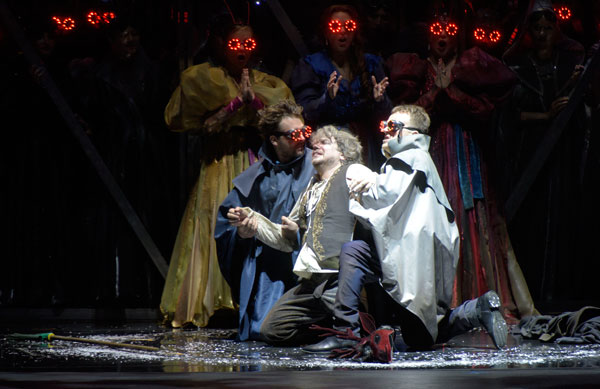 Поздний шедевр великого итальянца дважды ставился в Мариинке: в 1894-м – через год после мировой премьеры и под управлением Эдуарда Направника, и в 2006 году, когда режиссером выступил Кирилл Серебренников. Его спектакль – несомненная удача в новейшей истории театра, он запомнился забавными находками и блестящей игрой исполнителей главных персонажей. Супруг кумушки Алисы – ревнивец Форд появлялся на кабриолете марки Ford, планы наказать толстяка Фальстафа подруги обсуждали, сидя в парикмахерской под «колпаками» для изысканных причесок, а роль главного героя стала одной из лучших ролей Виктора Черноморцева, воплотившего ее с особым юмором и неподражаемой харизмой. Третий «Фальстаф» получился иным, весьма далеким от серебренниковской сатирической «комедии положений». Итальянская команда во главе с режиссером Андреа де Роза, ранее ставившим в Мариинском театре «Симона Бокканегру», предложила красивое действо, наполненное не только по-итальянски яркими светом и красками, но и проникновенным лиризмом.