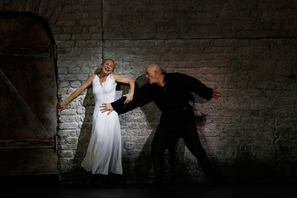 Поставить «Катерину Измайлову» позвали мастера зрелого, но в опере – дебютанта: театр упорно держится линии на привлечение громких имен из драмы. На сей раз с новичком угадали: Римас Туминас из Театра им. Вахтангова создал спектакль сильный, глубокий, в меру традиционный и в меру метафоричный, в котором удивительно, прежде всего, именно внимательное вслушивание постановщика в музыку, пронзительный взгляд в партитуру. Нет ни единого шага поперек, ничего противоречащего ни музыкальным характеристикам, ни пропеваемому тексту, что по нынешним временам дорогого стоит. Этически сомнительные сцены (например, глумленье над Аксиньей) поставлены с большой долей условности, но с помощью языка хореографии (работа Анжелики Холиной) – так удается избежать прямолинейного натурализма и одновременно сказать обо всем предельно ясно. Белые массивные кирпичные стены, напоминающие суровые монастырские, – основа сценографического решения Адомаса Яцовскиса, дают яркий и однозначный образ душного «темного царства», в котором, как на каторге, тянется-длится скучная жизнь именитой купчихи, оно же порождает ее чудовищные преступления (в отличие от Лескова Шостакович если не оправдывает свою Катерину, то сочувствует ей). Кстати, образ каторги – та арка, которой Туминас закольцовывает оперу: толпой каторжан, вдруг оборачивающихся работниками во дворе Бориса Тимофеевича, он начинает действо, ими же ожидаемо опера и завершается. И даже гротескные, казалось бы, неуместные итальянские арлекины в домино, вприпрыжку проскакивающие то в одной, то в другой сцене, – тот едкий сарказм, обескураживающий сюр, который обостряет «до беспредела» беспросветный драматизм ситуации.