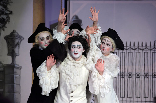 Для аутентичного исполнения оперы была проделана колоссальная работа, обеспечившая непередаваемый аромат давно минувшей эпохи. Барочный ансамбль «Солисты Екатерины Великой» под управлением Андрея Пенюгина подарил музыкальное изящество. Барочный балет «Анджолини» представил игривые, забавные танцевальные номера, бережно воссозданные Клаусом Абромайтом. Данила Ведерников детально проработал барочные жесты артистов и выстроил геометрически ясные мизансцены, в которых живость сценического действия сочеталась с классической соразмерностью эффектов и акцентов. Разговорные диалоги украшала своеобразная фонетика – речь артистов была окающей и с использованием фрикативного «г» (наподобие украинского или чешского), что сообщало действу шарм старины (репетитор Андрей Решетин). Черно-бело-кремовая гамма костюмов а ля XVIII век от Ларисы Погорецкой смотрелась стильно и гармонично.