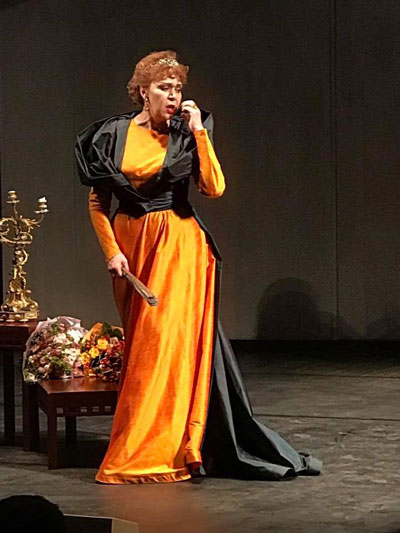 Концерт 26 февраля не был просто вокальным вечером с привычным чередованием номеров. Певица позаботилась об элементах сценографического антуража, художник Жанна Яковлева создала визуальный ряд на видеопроекционном экране, а сквозную линию «действа» эмоционально поддерживал ведущий Александр Водопьянов, попутно знакомя публику с фактами биографии композитора. Пара номеров включила в себя даже хореографию, так что идея монопрограммы реализовалась весьма креативно.