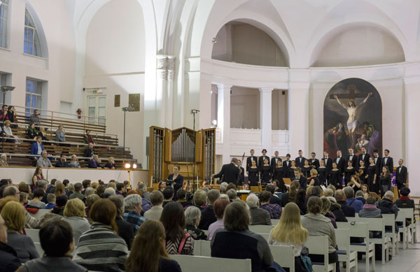 Полные тексты церковных кантат на русском издали лишь в XXI веке (благодаря усилиям игумена Петра Мещеринова), но если понимание смысла текстов стало проще, то с точки зрения «технологии», отношения к звуку, внимания к риторическим фигурам отечественные исполнители до сих пор, к сожалению, держатся в арьергарде. Тем ценнее стал опыт, который получили студенты Петербургской консерватории: в течение недели с ними работали немецкие специалисты – сопрано Мартина Рюпинг давала мастер-классы по вокалу, а барочный дирижер Франк Маркович обучал азам старинного исполнительства студенческий оркестр и хор. Плод этой серьезной работы публика смогла оценить 6 апреля в Петеркирхе, где прозвучали две светские баховские кантаты – «Геркулес на распутье» и «Кофейная» – и одна духовная: «Реформационная».