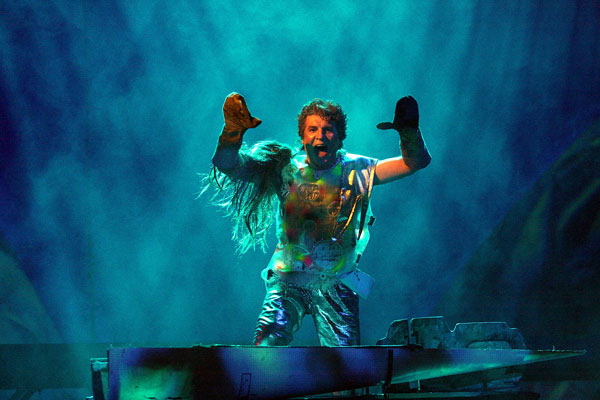 Правда, в первом действии нас вроде бы повели по уже знакомой, грозящей тупиком тропинке: пестрые отрепья, фанфаронские доспехи, которые сочли бы китчем даже на детском утреннике в школе. Но тут постановщики, будто их устыдил сам Вагнер с его феерически красочной партитурой, стали все активнее включать яркие визуальные средства.