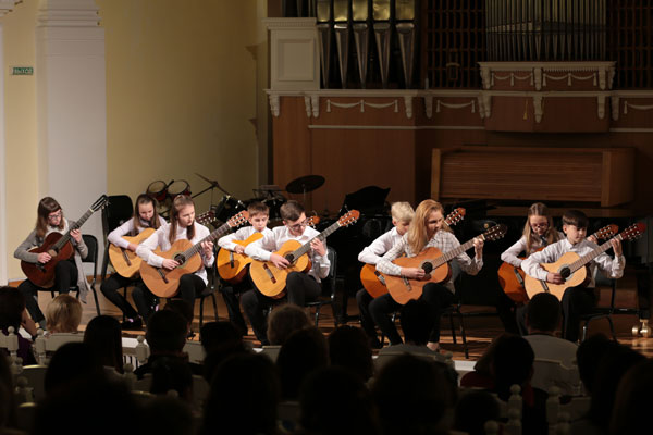Чем не пример для воспитанников? И заключается он прежде всего в следовании творческому принципу: не стой на месте, раздвигай рамки традиционного репертуара, меняй привычные формы, как это сделали мы, в один прекрасный день включив в гитарный состав перкуссию и синтезатор. Впрочем, это желание быть в движении, в поиске нового вообще свойственно ДШИ № 10. «Нет ничего удивительного в том, что и в нашем ансамбле скрипачей наряду со скрипкой сегодня звучат синтезатор и ударные, – продолжает тему Дора Павловна Ткалина. – Мы хотим идти в ногу со временем, а значит, должны слышать молодых. Их предложения и подсказки нам интересны, мы вместе обсуждаем их и вместе реализовываем. Поэтому в репертуаре ансамбля не только классика, но и музыка народов мира, и современная молодежная музыка в переложениях, которые я и концертмейстер ансамбля делаем сами».