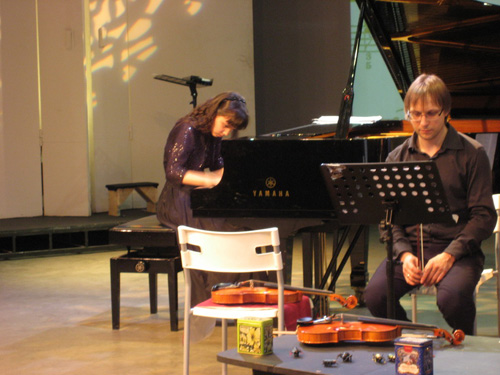Г. Дорохова «Сладкая греза Чайковского», где происходит игра смычками по ребру компакт-дисков (условных «источников звука») с сохранением исходной ритмики и артикуляции.