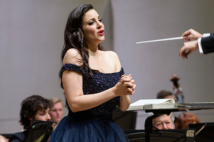 Аккомпанировал оркестр Московской филармонии – в целом достойно, хотя, увы, не без эпизодических огрехов. Самостоятельные оркестровые номера составили чуть не половину хронометража: увертюра из «Беатриче и Бенедикта» Берлиоза, фрагменты сюиты из «Кармен», балетная музыка из «Отелло», увертюра к «Пирату». За дирижерским пультом стоял молодой американец Райан Макадамс, уверенно управлявшийся с коллективом и обеспечивший деликатное сопровождение дебютантке.