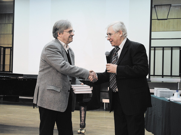 В программе конференции наряду с традиционными научными сообщениями было два знаменательных события. Это премьера «Триумфального марша в честь института А. Шнитке», созданного близким другом Альфреда Гарриевича, современным мэтром петербургской композиторской школы Сергеем Слонимским. И это презентация восьмого тома научного «сериала» «Альфреду Шнитке посвящается…» - книги, изобилующей принципиально новыми материалами, в которых А.Г. Шнитке предстает не только как композитор, но и как живой человек в окружении коллег и друзей. Год от года увеличивается число авторов, пишущих о выдающемся таланте ХХ века. Среди них и состоявшиеся музыковеды, и начинающие исследователи, которым в этом издании предоставляется возможность раскрыть свой научный потенциал.