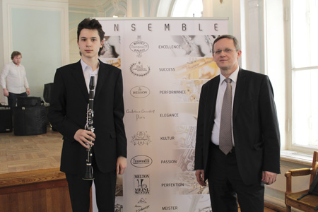 В завершение концерта выступил завоевавший I место среди ансамблей в старшей группе ДМШ Квинтет саксофонов МГДМШ им. И.О. Дунаевского (Я. Артеменко, Л. Чатян, Н. Поляков, Ю. Кальметова и А. Баталеев). Совместно с ритм-секцией (В. Петровская, А. Кузнецов, С. Медведев) ребята «зажгли» публику, показав и хорошее чувство ансамбля, и инициативность каждого его участника. «В составе конкурса ансамблей выступили более 80 человек – это очень радует, потому что, как известно, у нас практически нет солистов-кларнетистов, и чаще всего выпускникам приходится играть в составе ансамблей и оркестров, – поделился А.Н. Краси. – Ансамблевая практика очень важна, и меня расстраивает, что в средних специальных учебных заведениях дело с ней обстоит не лучшим образом. Возможно, наш конкурс поспособствует тому, что педагоги уделят ей больше внимания». Директор отметил и еще одну любопытную закономерность: «В этот раз шестую часть всех участников – больше 20 человек – составляют представительницы прекрасного пола. Если за всю предыдущую историю лауреатом среди девочек становилась только одна участница – Надежда Трифаленкова на прошлом конкурсе, то в этот раз лауреатами стали уже три – Софья Мехоношина и Александра Васина, разделившие II премию в младшей группе ДМШ, и Софья Гришина, завоевавшая III премию в старшей группе ссузов. Мальчикам стоит задуматься о возникающей конкуренции!»