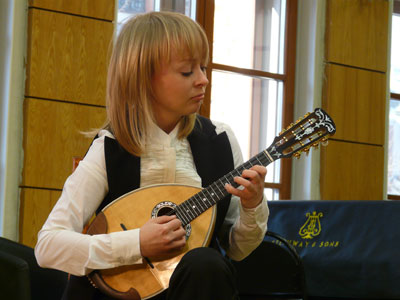 В продолжение встречи В.П. Круглов коснулся некоторых вопросов импровизации в барочной музыке – в частности, в концертах Вивальди. Иллюстрировало замечания профессора исполнение Концерта для двух мандолин Вивальди - исключительно тонкая и полностью захватившая публику интерпретация. Кроме ансамблевых номеров в программу концерта включались и сольные выступления. Нельзя не отметить виртуозное мастерство Александры Скрозниковой, сыгравшей I часть Сонаты для мандолины Скарлатти, и великолепное прочтение Allegro из сонаты Моцарта Екатериной Мочаловой. Подлинный фурор вызвало блистательное Фанданго Боккерини.