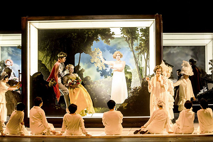 Английский режиссер Дэвид Паунтни взял в свою команду сценографа Лесли Траверса, художника по костюмам Мари-Жан Лекка, художника по свету Фабриса Кебура и хореографа Эмиля Весоловского. В результате театр получил незатейливую, воздушно-легкую современную постановку, в которой известный радикал Паунтни, прибегнув к эстетике абстрактного минимализма (с отельными элементами реалистичности), воплотил исключительно позитив. Он создал жизнеспособный театральный продукт – увлекательный музыкально-постановочный комикс, правда, перенес действие из XVIII в XX век, да еще в период Советско-польской войны 1919–1921 годов.