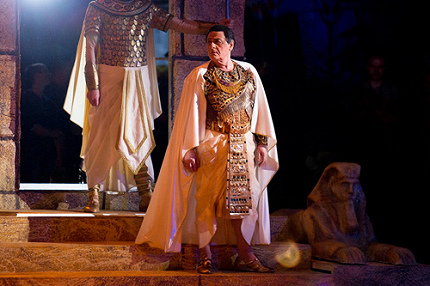 Бюджетная постановка Людмилы Налетовой, сделанная десять лет назад в пору скитания театра по разным московским сценам (в то время здание на Большой Дмитровке переживало грандиозный ремонт), откровенно скучна и невыразительна. Посмотрев ее премьеру в 2004 году, сыгранную на сцене Детского музыкального театра им. Н. Сац, я ни разу не захотел вернуться на этот спектакль, несмотря даже на то, что за эти годы в театре появилось немало молодых и талантливых Тосок и Каварадосси, а мастерство певшего на премьере Скарпиа Евгения Поликанина, судя по отзывам коллег, производит большое впечатление и сегодня. И если выбирать из двух московских «Тосок», с завидной регулярностью идущих на главных столичных сценах, я всегда отдавал предпочтение старинному спектаклю Бориса Покровского в Большом – пусть даже и осталась от великих составов прошлого в нем лишь одна неувядающая Маквала Касрашвили, а его сегодняшнее состояние оставляет желать много лучшего...
