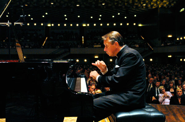 Многое из сказанного можно повторить и в отношении тех моцартовских концертов, которые он играет, зачастую, как это ныне принято, совмещая функции солиста и дирижера. Остановимся лишь на двух из них, на концертах Es-dur, К. 271 и c-moll, К. 491. Первый, так называемый Jeune homme, был написан Моцартом еще в 20-летнем возрасте, но тем не менее это бесспорный шедевр, превосходящий многое, созданное им позднее. Особой глубиной отличается вторая, медленная часть концерта в тональности с-moll. Это, кстати, не единственный случай минорной медленной части в мажорном концерте. Не менее известные примеры – вторая часть Концерта А-dur, К. 488, написанная в тональности fis-moll, глубоким прочтением которой прославилась в свое время М. Юдина, а также написанная в c-moll медленная часть Концерта Es-dur, К. 482, проникновенно звучащая в интерпретации А. Шнабеля.