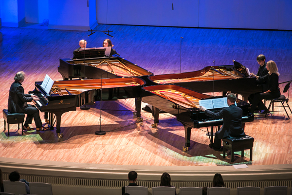Минималистская линия была продолжена «Заклинанием 4» нидерландского композитора Симеона тен Хольта для четырех роялей (Алексей Любимов, Йерун ван Веен, Алексей Зуев, Владимир Иванов-Ракиевский). Это грань между композиторской и импровизационной музыкой. Любимов определил ее как нечто вроде реки, потока или незримого пейзажа, который плавно движется мимо нас. Вместе с тем это очень человечная музыка, завораживающая и обволакивающая сознание, так что попадаешь в какое-то другое измерение, где два часа пролетают минут за двадцать…