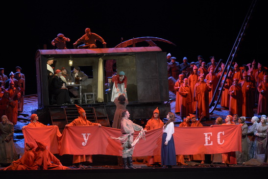 Валерий Гергиев сознательно обратил внимание прессы на встрече перед открытием фестиваля «Звезды белых ночей» на то, что не все спектакли, поставленные изначально для старой сцены, в равной степени удачно переезжают на Новую сцену. Трудности механического переноса сказываются, главным образом, в изменении пространственных характеристик, притом что у многих старых постановок есть мощный потенциал переноса в более просторные условия. «Семен Котко» – из их числа. Но этот дебют оказался любопытен не столько с точки зрения укрупнения масштаба, сколько с позиции актуализации в историко-политическом контексте, на который и было направлено все внимание слушателей.