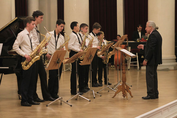– Буквально все коллективы ДШИ выступают на сценах филармонии им. Шостаковича, Академической капеллы, Союза композиторов Санкт-Петербурга, в Консерватории им. Римского-Корсакова, а сейчас вовсю идет подготовка к традиционной рождественской неделе. Ансамбль саксофонистов «Дискант-Сакс-Хорус» состоит из ребят самого разного возраста, при этом заслуженный работник культуры РФ Николай Степанович Парфенов создал по-настоящему профессионально звучащий состав. В 2000–2001 годах он стал призером Международного фестиваля «Джаз-Парнас», в 2002-м награжден дипломом лауреата телевизионного конкурса «Арт Круиз – 2003», а недавно член жюри из Штатов пригласил участника ансамбля продолжить свое обучение в Беркли. К этому можно добавить, что у «Дискант-Сакс-Хоруса» выпущено несколько лазерных дисков. Но даже учащиеся с достаточно скромными артистическими способностями будут задействованы в праздничные дни в составе других школьных коллективов. Благодаря духу Рахманиновской школы и методичным усилиям педагогов требуется совсем немного времени, чтобы они стали полноценными участниками любого творческого процесса.