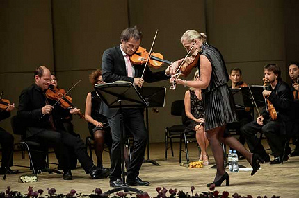 Он, безусловно, виртуоз: феноменальное владение дыханием позволяет ему с математической точностью выпевать головокружительные колоратуры и покорять сверхвысокие ноты, трудные даже для женского меццо. Техническое совершенство – пожалуй, самое сильное впечатление от его выступления, плюс – необычный артистизм, манера держаться на сцене, больше бы подошедшая рок- или поп-исполнителю. Главная проблема Ли (как, впрочем, и других контратеноров) – баланс с оркестром: несильный по сути фальцет, тембрально бедный (в силу естественных причин) с трудом выдерживает паритет даже со сверхаккуратным «Матеусом». Единственный номер, прозвучавший безупречно с этой точки зрения, – ария Роланда («Ah sleale») из одноименной оперы Вивальди, где ансамбль играл исключительно пиццикато. Но стоит только дать чуть-чуть tutti и заиграть смычком, как голос исполнителя безнадежно тонет в инструментальной пучине.