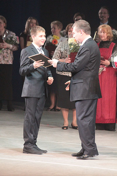 Для учащихся и студентов – победителей остальных номинаций была организована экскурсия в Музей изобразительных искусств им. Пушкина. Наряду с этим победители конкурса «Лучший преподаватель детской школы искусств» были приглашены на обзорную экскурсию по историческому зданию Большого театра. В этом конкурсе приняли участие преподаватели ДШИ и образовательных учреждений, реализующих программы среднего профессионального образования для учащихся 1 – 9 классов по специальностям культуры и искусства. После экскурсии преподаватели-лауреаты отправились на Новую сцену Большого театра, где и состоялись главные события заключительного дня. Торжественную церемонию награждения победителей конкурса «Лучший преподаватель детской школы искусств» провел заместитель министра культуры РФ Григорий Ивлиев. С приветственным словом ко всем победителям – юным дарованиям и их преподавателям – обратился председатель комитета по образованию Государственной Думы Александр Дегтярев, а соответствующее послание сему высокому форуму от имени председателя комитета по культуре Государственной Думы Станислава Говорухина зачитала входящая в состав комитета Мария Максакова.