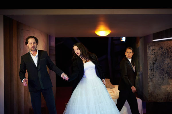 История Глюка ввиду своей безумной отдаленности во времени, ввиду своей мифичности подстегнула режиссера сделать ее оглушительно современной. Орфей появляется в брючном костюме (художник по костюмам – Флоранс фон Геркан), словно служащий офиса, эдакий белый воротничок. Похороны Эвридики выглядели в этом спектакле настолько буднично – со всей этой обязательно-необязательной толпой лицемерно сочувствующих, что все происходившее казалось вдвойне сюрреалистичным. За спиной Орфея в исполнении великолепного американского контратненора Беджуна Меты (его отец приходится двоюродным братом дирижеру Зубину Мете), успешно прописавшегося в Европе, неотступной тенью бродили юный Амур и старый Юпитер. Но если у Амура было, как и предписывала партитура, «право голоса» (знойное сопрано Надин Серра), то Юпитер казался абсолютно неприкаянным, не способным повлиять на власть Рока. Взяв итальянскую редакцию оперы, в которой еще не было знаменитой мелодии флейты, режиссер все же не смог удержаться, чтобы не включить этот хит в финал постановки, который получил фантастический воздух, вмиг обрел космическое смысловое пространство. Не обошлось без подсказки Баренбойма, вовремя вспомнившего об этой обезоруживающе нежной трагической мелодии, которую, по его признанию, частенько исполняет в качестве биса на своих сольных концертах. Она совершенно разомкнула оперу, поставив многоточие. В этом финале Орфей безвозвратно теряет Эвридику, а вместе с ним теряют своих прекрасных невест многочисленные женихи, намекая о призрачности брака не земле.