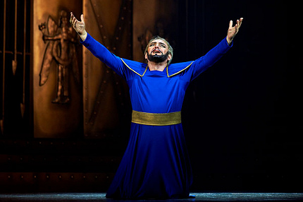 В последние годы от всевозможных жестких актуализаций этой оперы на ветхозаветный сюжет мы успели изрядно подустать: что ни постановка, то холокост, газовые камеры и навязчивые политические аллюзии с новейшей историей. Эти темы, безусловно, важны, но к шедевру Верди по либретто Т. Солеры ровным счетом никакого отношения не имеют! Так что мобильно-легкая, но выразительная сценография с общими намеками на эпоху пророка Захарии и царствования Навуходоносора II (Набукко), условно-стилизованные под нее костюмы и довольно статичные, но сюжетно оправданные «фундаментально-разводные» мизансцены рождают ту яркую «театральную глыбу», которая, оставаясь верной оперной эстетике XIX века, воспринимается отнюдь не архаично, а очень даже современно! Изначальная драматургическая слабость либретто очевидна: в опере происходит много событий, но, по сути, это оратория с виртуозно-развернутыми сольными партиями, ансамблями и мощным хоровым пластом.
