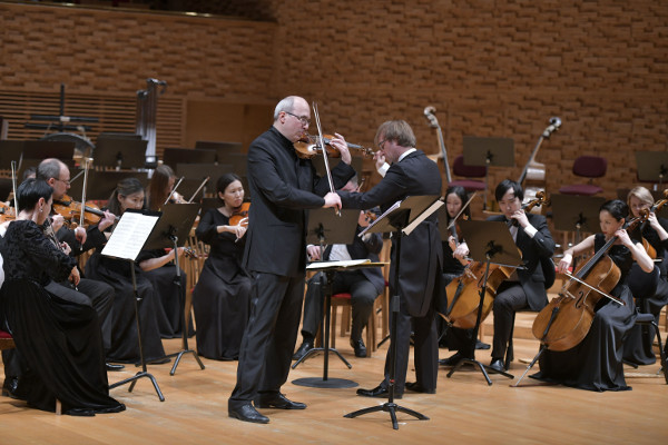 Во втором отделении дал о себе знать южный темперамент главного дирижера. В знаменитой «Фантастической» симфонии Гектора Берлиоза Фабио Мастранжело устроил настоящий инструментальный театр, полный эксцентрики и ярких красок. Придуманный композитором сюжет о безнадежно влюбленном артисте, пытающемся добиться взаимности, последовательно разворачивался на протяжении пяти частей, подобных действиям спектакля. Оркестр послушно откликался на жесты дирижера, уверенно удерживая темп и прекрасно справляясь со сложностями этой блестящей и очень трудной партитуры. Написав еще в пушкинские времена свою симфонию, Берлиоз перевернул в ней представления современников о том, как должен звучать классический оркестр. Необычные решения (например, во второй части тема вальса звучит в унисон у скрипок и трубы, в финале мрачный гимн Diesirae ведут вместе туба и фагот) были специально подчеркнуты Фабио и старательно воплощены музыкантами. Инфернальная сцена шабаша в последней части симфонии неожиданно напомнила открывшую концерт поэму «Шаман», образовав тем самым стройную арку между стихиями Запада и Востока, столь различными, но, вместе с тем, всегда имеющими точки пересечения друг с другом.